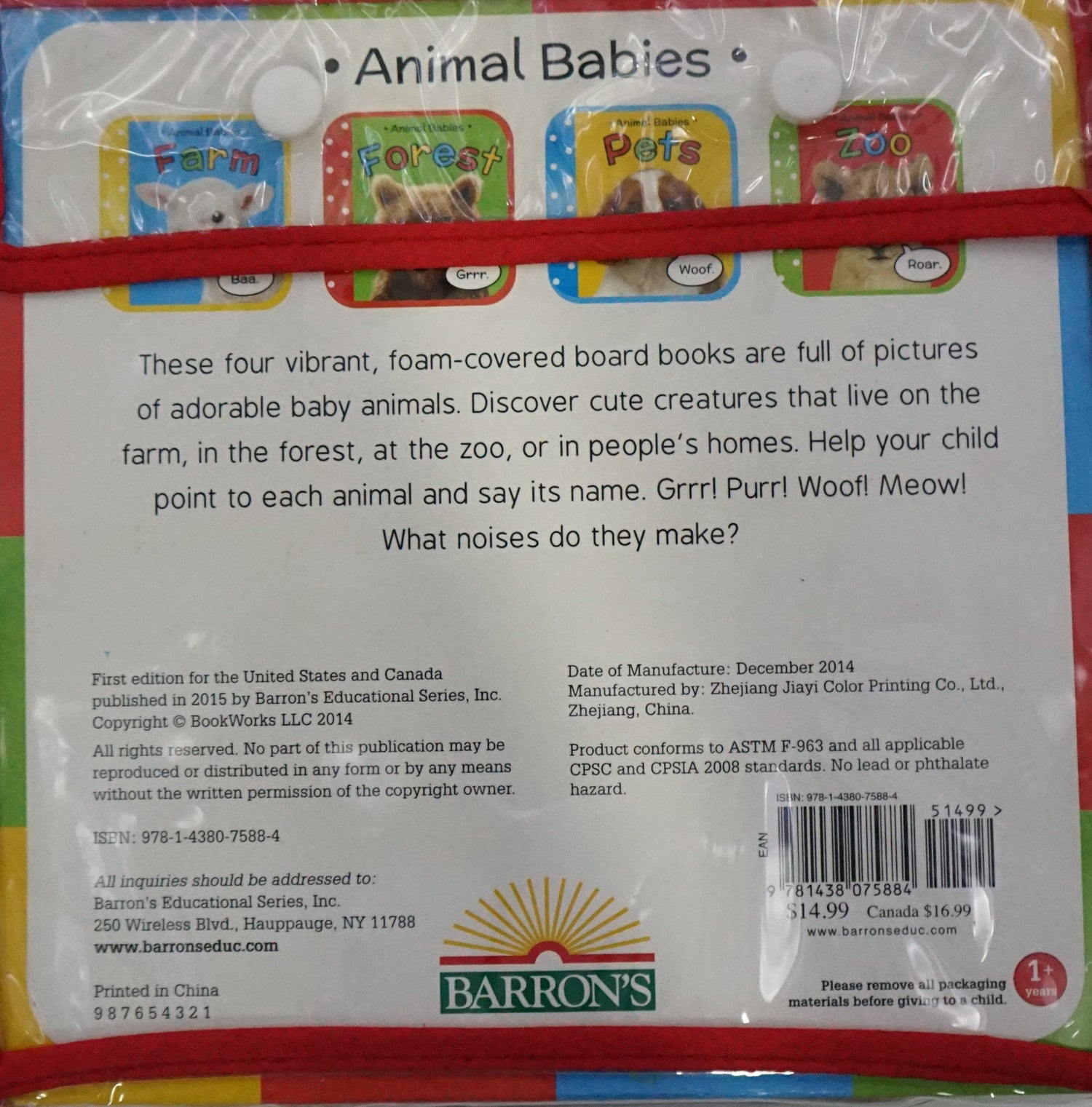 Babies and toddlers will love these four vibrant, foam-covered board books that come in a cute handled bag that they can take wherever they go. Each book is chock-full of adorable animals and is perfect for little hands. There's so much to see and discover that your littlest reader will always have something fun to choose from. Take them on a "trip" to four beloved places! Begin the "tour" with Forest, where animals like a bear cub sit by the river and grumble: "grrr"; then off to Zoo, where a giraffe calf says "chomp" and feasts on shiny green leaves; next stop: Farm, where a mud-covered piglet says "oink"; and finally, at home with Pets, where a pretty kitten says "meow" and chases a string. Children will laugh with delight as they learn each animal's name and all of the noises they make. It's a perfectly lovely way to foster an early love of reading at nap time, bedtime, or any time you want to spark their curiosity about the world around them.