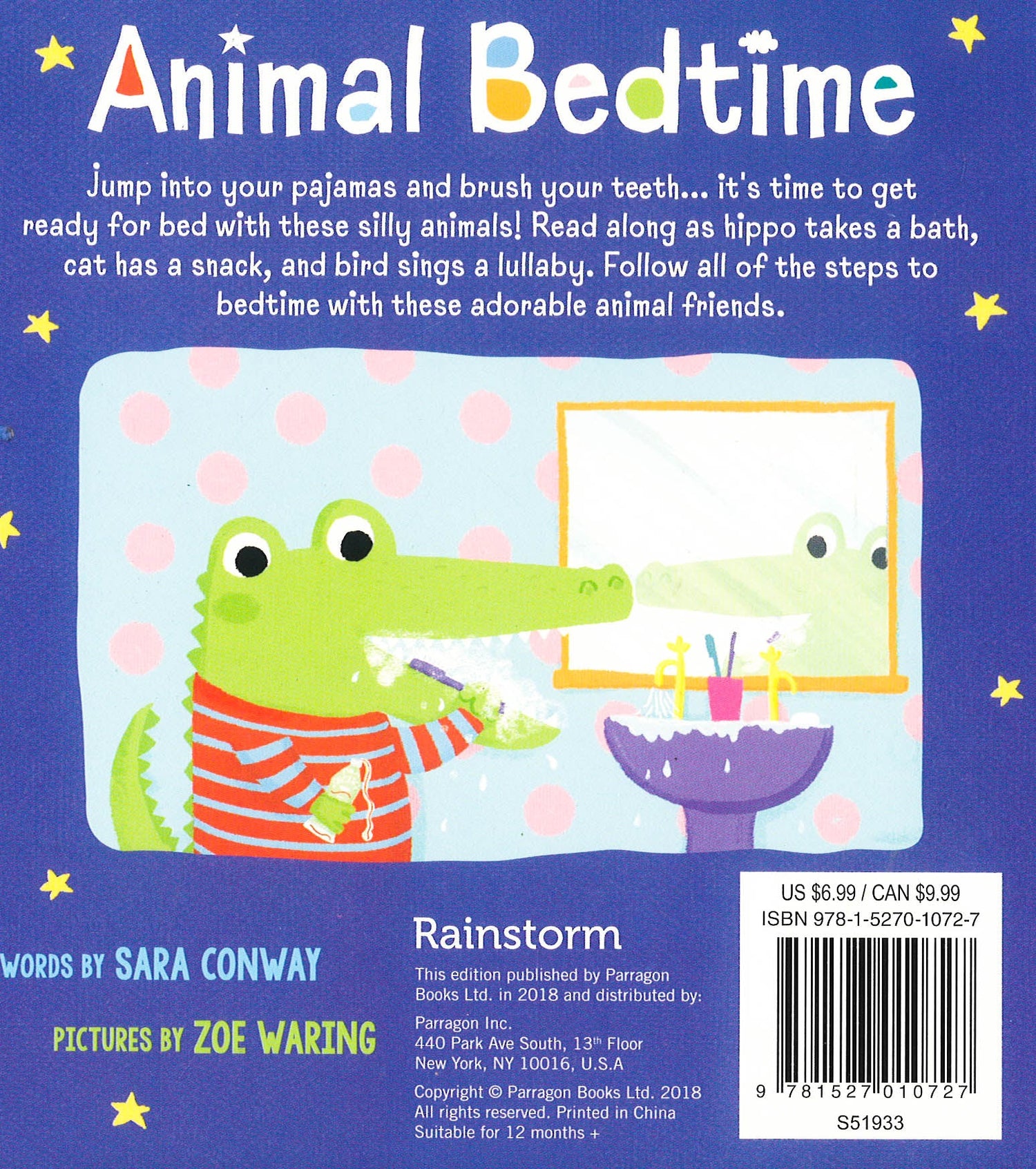 Jump into your pajamas and brush your teeth . . . it's time to get ready for bed with these silly animals! Read along as hippo takes a bath, cat has a snack, and bird sings a lullaby. Follow all of the steps to bedtime with these adorable animal friends.