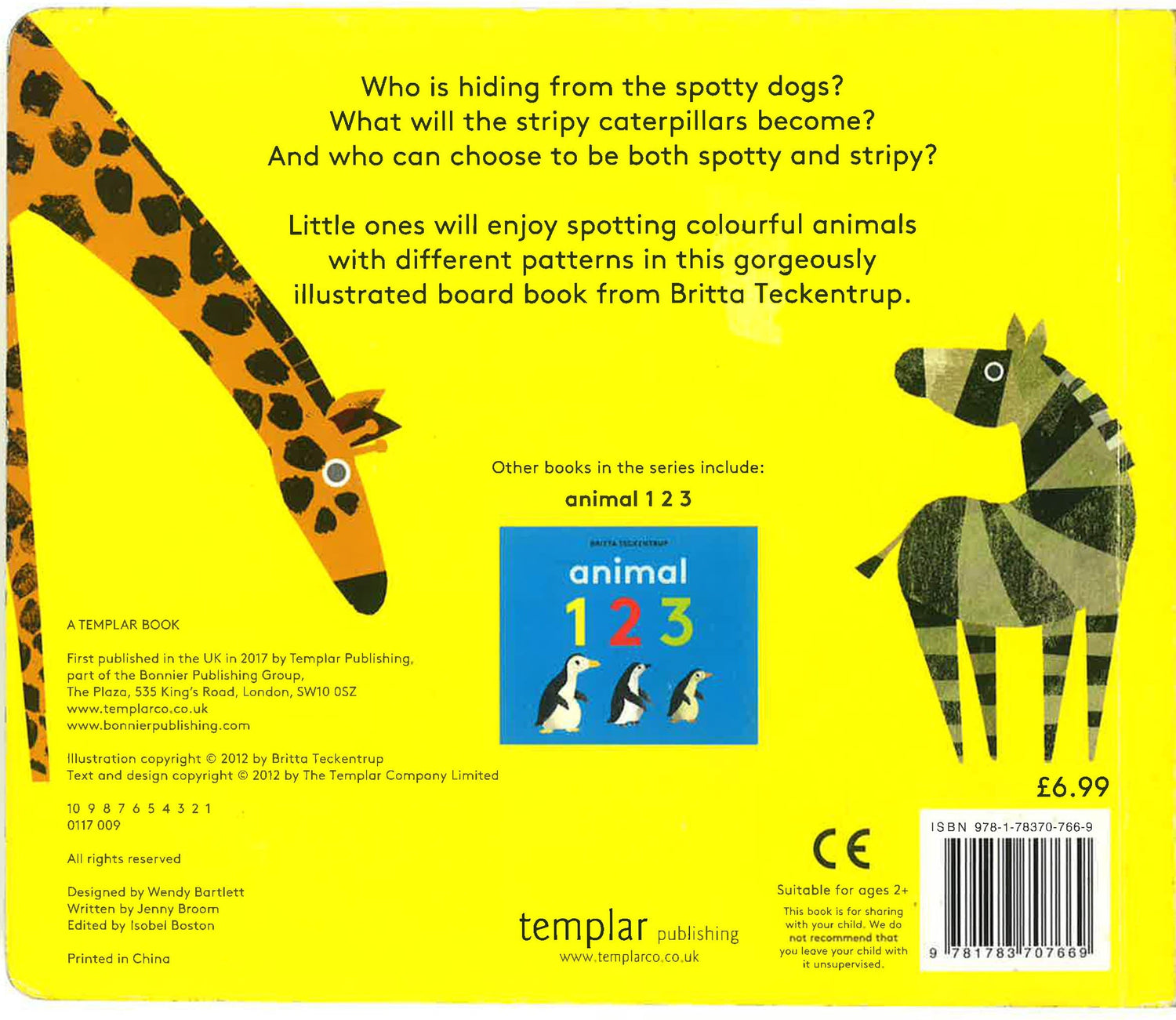 From a spotty dog to a stripy caterpillar and a host of other patterned creatures, Britta's stylishly bold illustrations are brought to life in this sturdy board book.