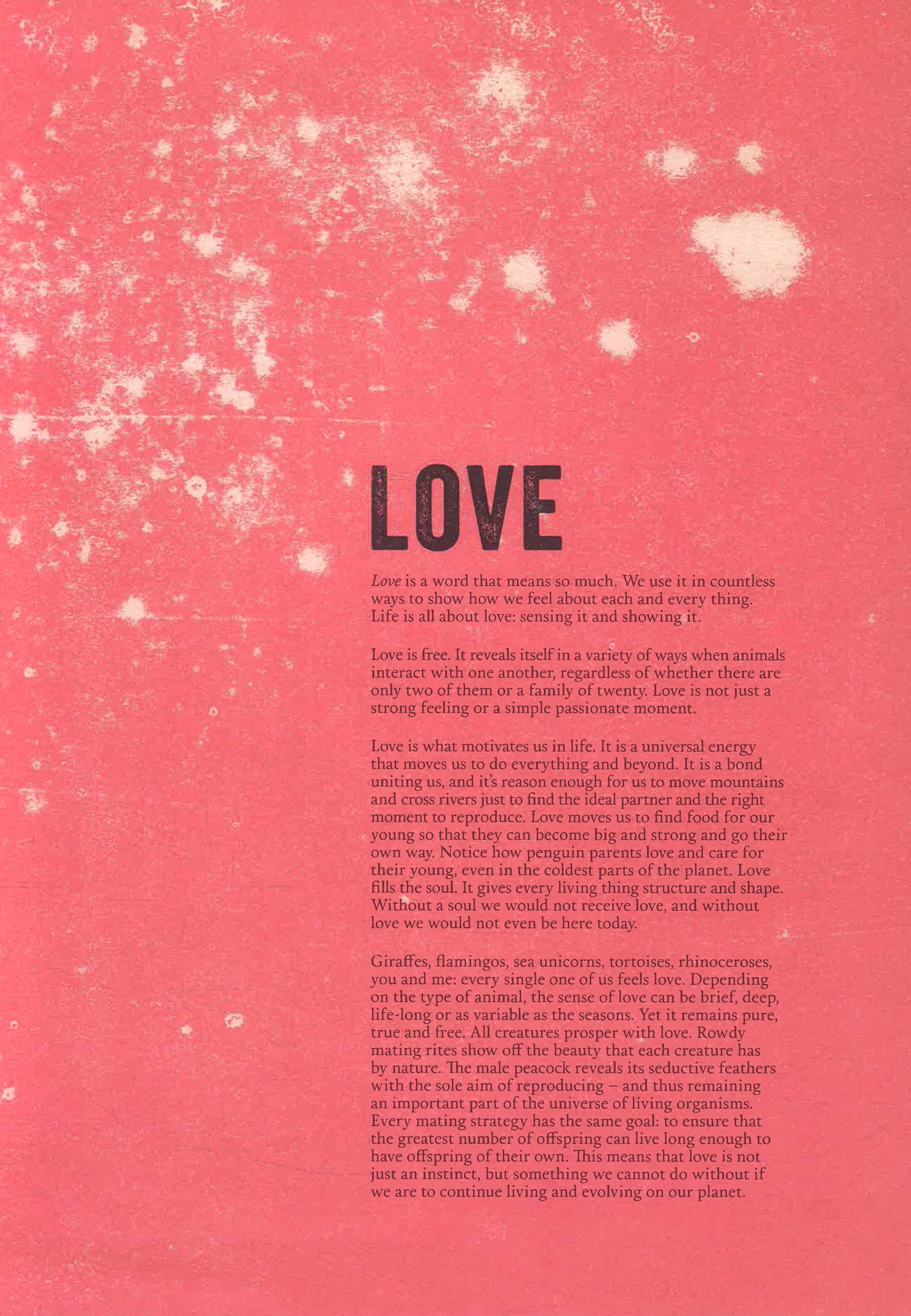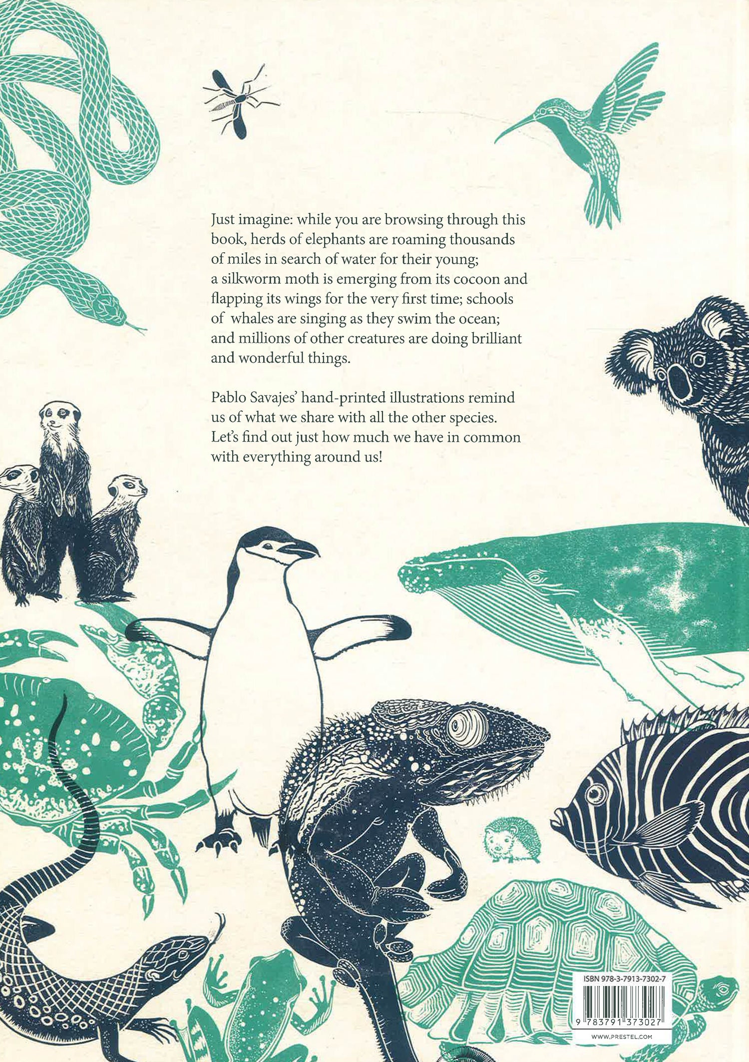 Featuring beautifully distinctive prints of the natural world and sensitive text, this book helps children understand the inextricable connections between human and animal life. Sometimes it’s easy to forget that humans are not the only inhabitants of Earth. This visually striking book reminds us that not only do we share an ecosystem with other living things, but that we can also learn much from the behavior and instincts of our animal neighbors. In Pablo Salvaje’s handcrafted, softly colored prints readers encounter a wide range of creatures—from jellyfish and peacocks to polar bears and snakes. With chapters on love, survival, change, habitat, water, and other topics, this book takes readers on a journey across the planet to show how animals, like humans, form bonds, engage in rivalries, adapt their behavior to cope with challenges, and do anything to protect their offspring. A beautiful lesson in compassion, this book carries a universal message that readers young and old will appreciate and return to again and again.