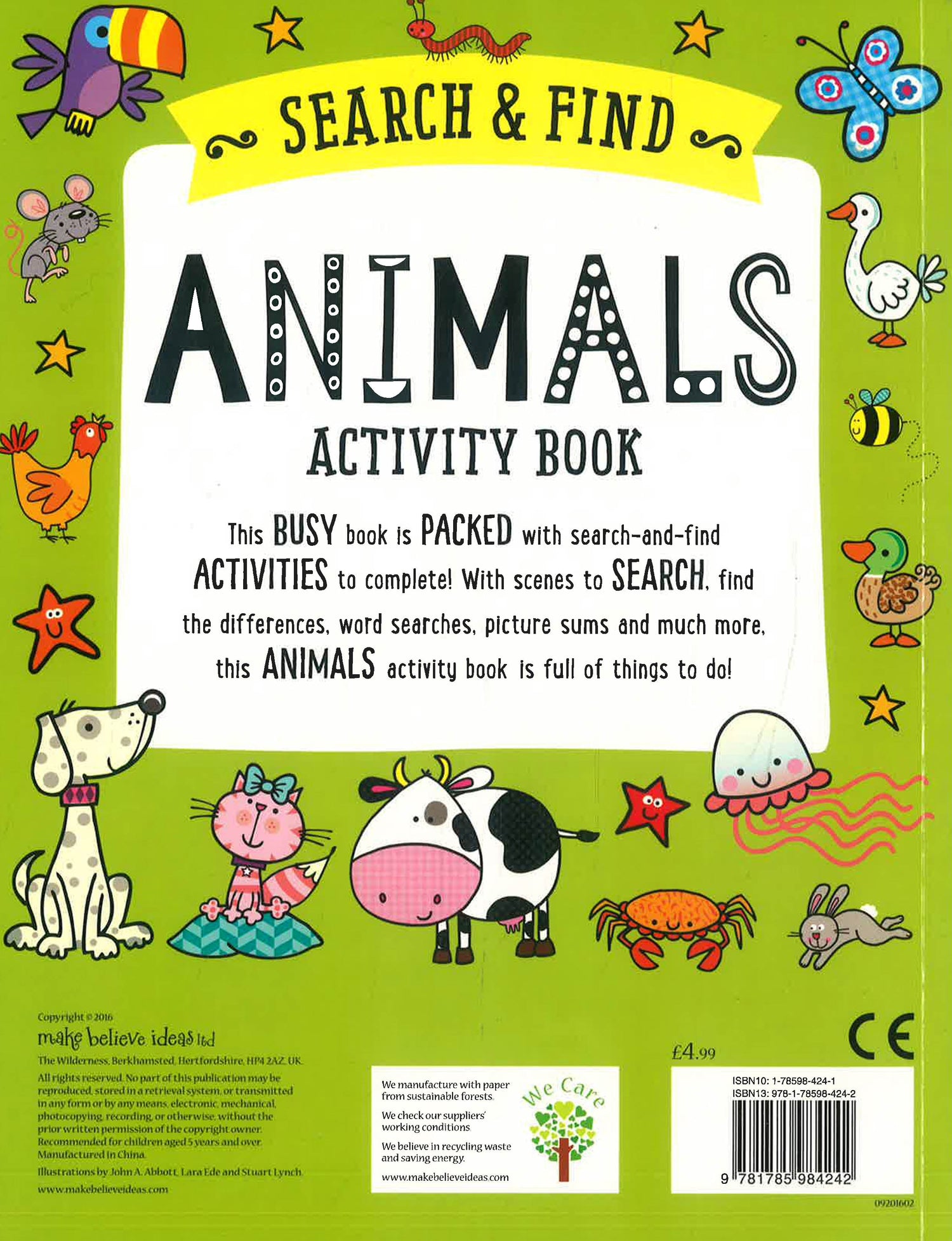 This busy book is packed with search-and-find activities to complete! Read the instructions to complete each activity and then turn to the back of the book to check the answers. With scenes to search, find the differences, word searches, picture sums and much more, this animals activity book is full of things to do! This paperback book has 40 pages and measures: 28 x 21.5 x 0.4cm.