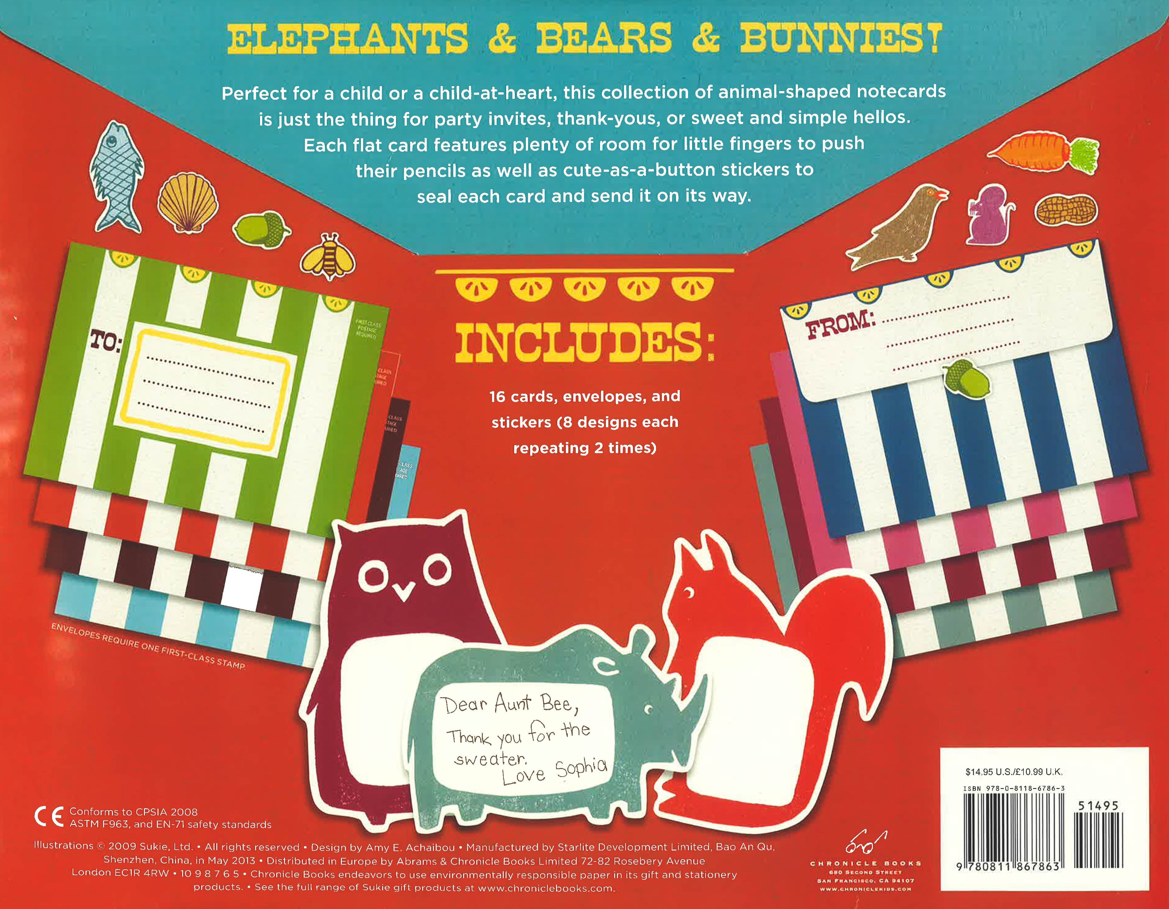From bunnies to bears to elephants, this delightful die-cut notecard set features 16 animal-shaped cardAs perfect for thank yous, invites, birthdays, or quick hellos.