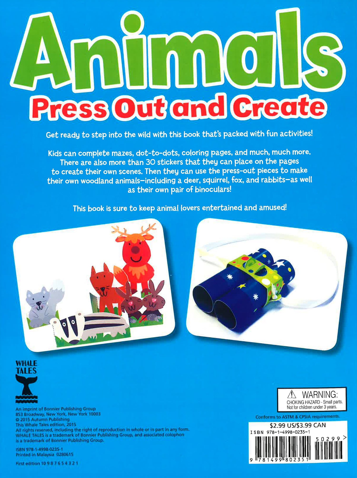 Kids can complete mazes, dot-to-dots, colouring pages, and much, much more. There are also more than 30 stickers that they can place on the pages to create their own scenes. Then they can use the press-out pieces to make their own woodland animals - including a deer, squirrel, fox, and rabbits - as well as their own pair of binoculars!