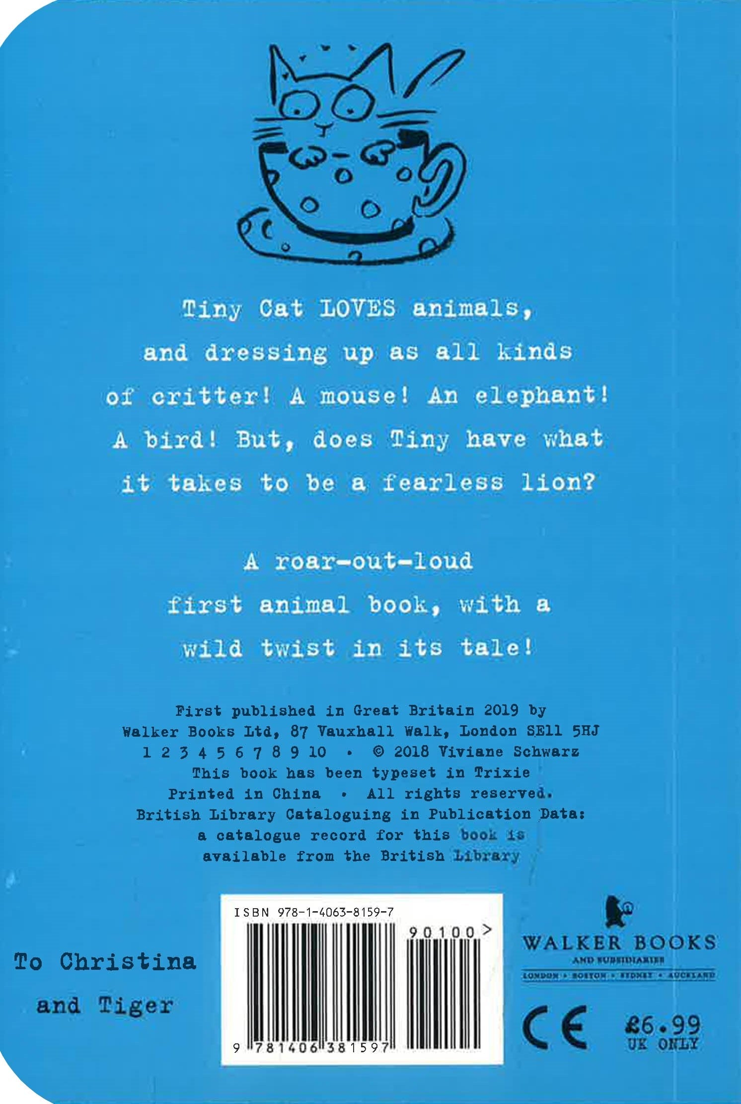 Tiny Cat is playing dressing-up! She rolls up in a rug to become a snake - hiss! And with booties on her paws, she's a horse - neigh! In fact, with oodles of imagination, Tiny Cat can be any animal she wants to be! But does Tiny Cat have what it takes to be a fearless lion? Find out in this inventive picture book with an abundance of visual humour!