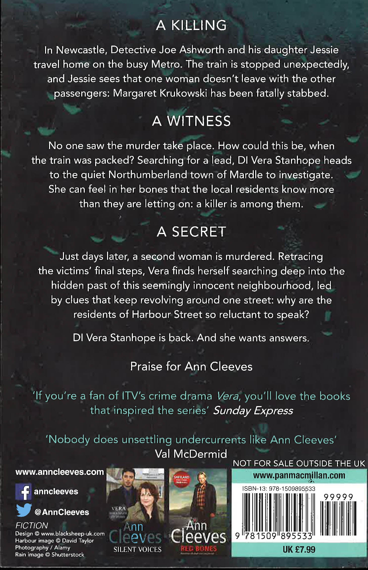 *Winner of the 2017 Crime Writers' Association Diamond Dagger* Harbour Street is the sixth book in Ann Cleeves' Vera Stanhope series - now the major ITV detective drama Vera, starring Brenda Blethyn. A KILLING. In Newcastle, Detective Joe Ashworth and his daughter Jessie travel home on the busy Metro. The train is stopped unexpectedly, and Jessie sees that one woman doesn't leave with the other passengers: Margaret Krukowski has been fatally stabbed. A WITNESS. No one saw the murder take place. How can this be, when the train was packed? Searching for a lead, DI Vera Stanhope heads to the quiet Northumberland town of Mardle to investigate. She can feel in her bones that the local residents know more than they are letting on: a killer is among them. A SECRET. Just days later, a second woman is murdered. Retracing the victims' final steps, Vera finds herself searching deep into the hidden past of this seemingly innocent neighbourhood, led by clues that keep revolving around one street: why are the residents of Harbour Street so reluctant to speak? DI Vera Stanhope is back. And she wants answers. Enjoy more of Vera Stanhope's investigations with The Crow Trap, Telling Tales, Hidden Depths, Silent Voices, The Glass Room, The Moth Catcher, and The Seagull.