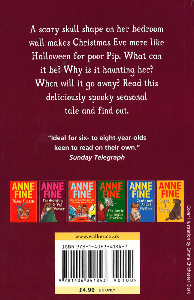 Lots of children find it difficult to sleep on Christmas Eve, usually because they are excited about the presents that Father Christmas is going to bring. But Pip Parker is not excited; she's scared. Every night for a week she's been lying awake watching the horrible skull shape gleaming from her bedroom wall. What is it? Why is it haunting her?A deliciously spooky Christmas tale by the 2001-2003 Children's Laureate. Lots of children find it difficult to sleep on Christmas Eve, usually because they are excited about the presents that Father Christmas is going to bring. But Pip Parker is not excited; she's scared. Every night for a week she's been lying awake watching the horrible skull shape gleaming from her bedroom wall. What is it? Why is it haunting her? When will it go away?
