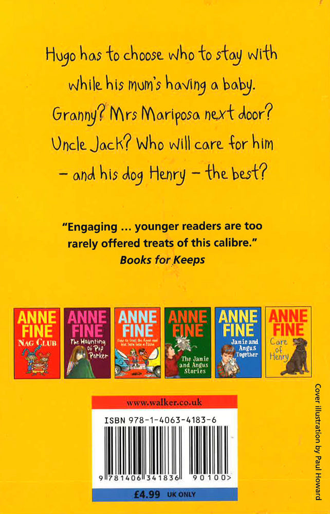 Hugo has to choose who to stay with while his mother's having a baby. Granny? Mrs Mariposa next door? Uncle Jack? Who will care for him - and his dog Henry - the best? This charmingly illustrated tale of priorities and friendship will teach kids to think carefully about what they value most in life, and stay with them long after they've turned the final page. A touching story for younger readers from former Children's Laureate Anne Fine.