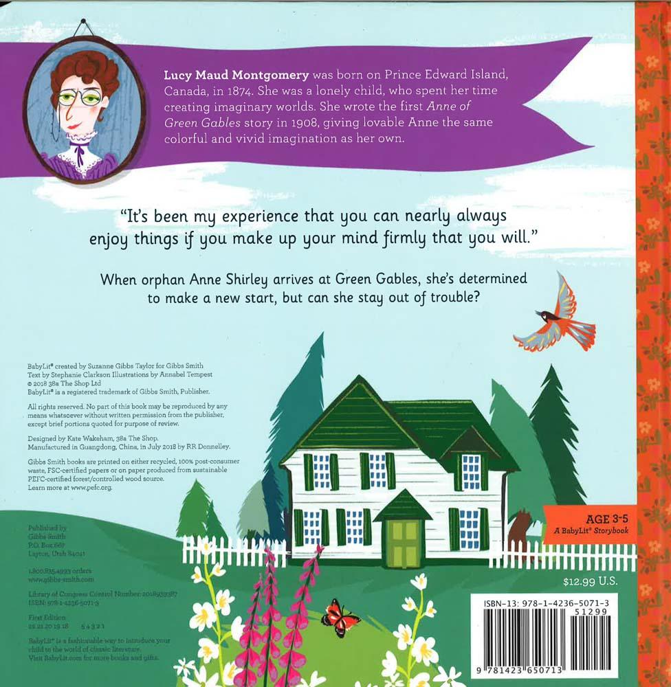 In Anne of Green Gables, preschoolers get to know the beloved redheaded orphan Anne Shirley, who is sent to live with Marilla and Matthew Cuthbert in Avonlea. Tag along with Anne on her adventures with her best friend Diana and classmate Gilbert as they explore Prince Edward Island. Easy-to-follow, engaging text combined with original quotes and beautiful artwork create a book to be treasured through childhood and beyond. Part of the BabyLit(R) Storybook Series.