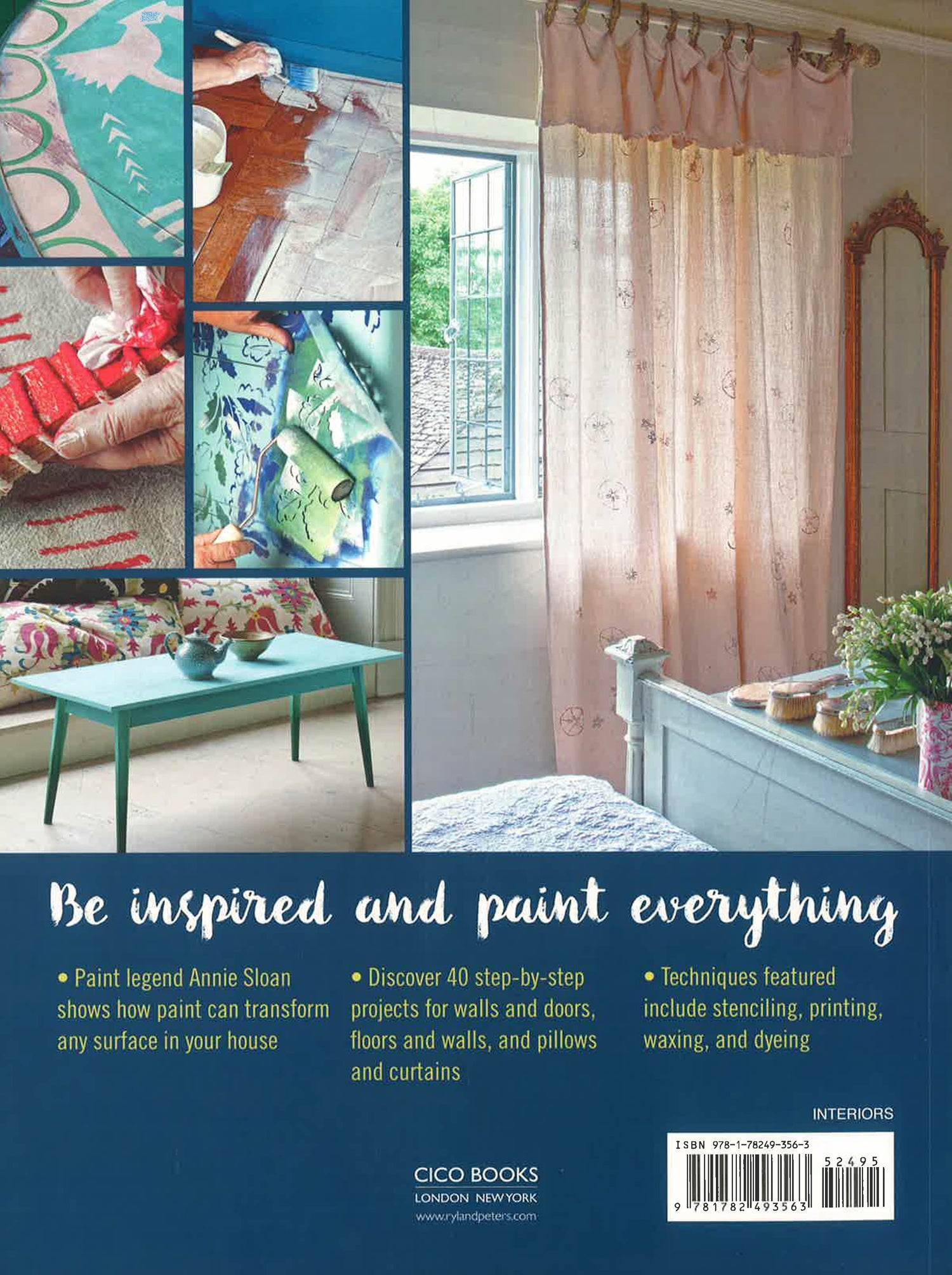 In this, her most personal book yet, Annie Sloan opens up a world of possibilities when it comes to decorating your home. As well as ways to transform walls and furniture, you’ll also learn wonderful techniques for painting floors, fabrics, lighting, and more. Discover three chapters, all packed full of inspiration and advice: Furniture and Lighting, Fabric and Other Surfaces, and Walls and Floors. Forty step-by-step projects will guide you through the methods for using paint in ways you never thought possible, with clear instructions accompanying each picture, and helpful tips along the way. Learn about printing, stenciling, gilding, transferring images, and dyeing fabric, as well as all the secrets of making the most of Annie’s own Chalk Paint® range. Find out, too, how to combine colors for different styles, and how to tap into your creativity by painting patterns freehand.