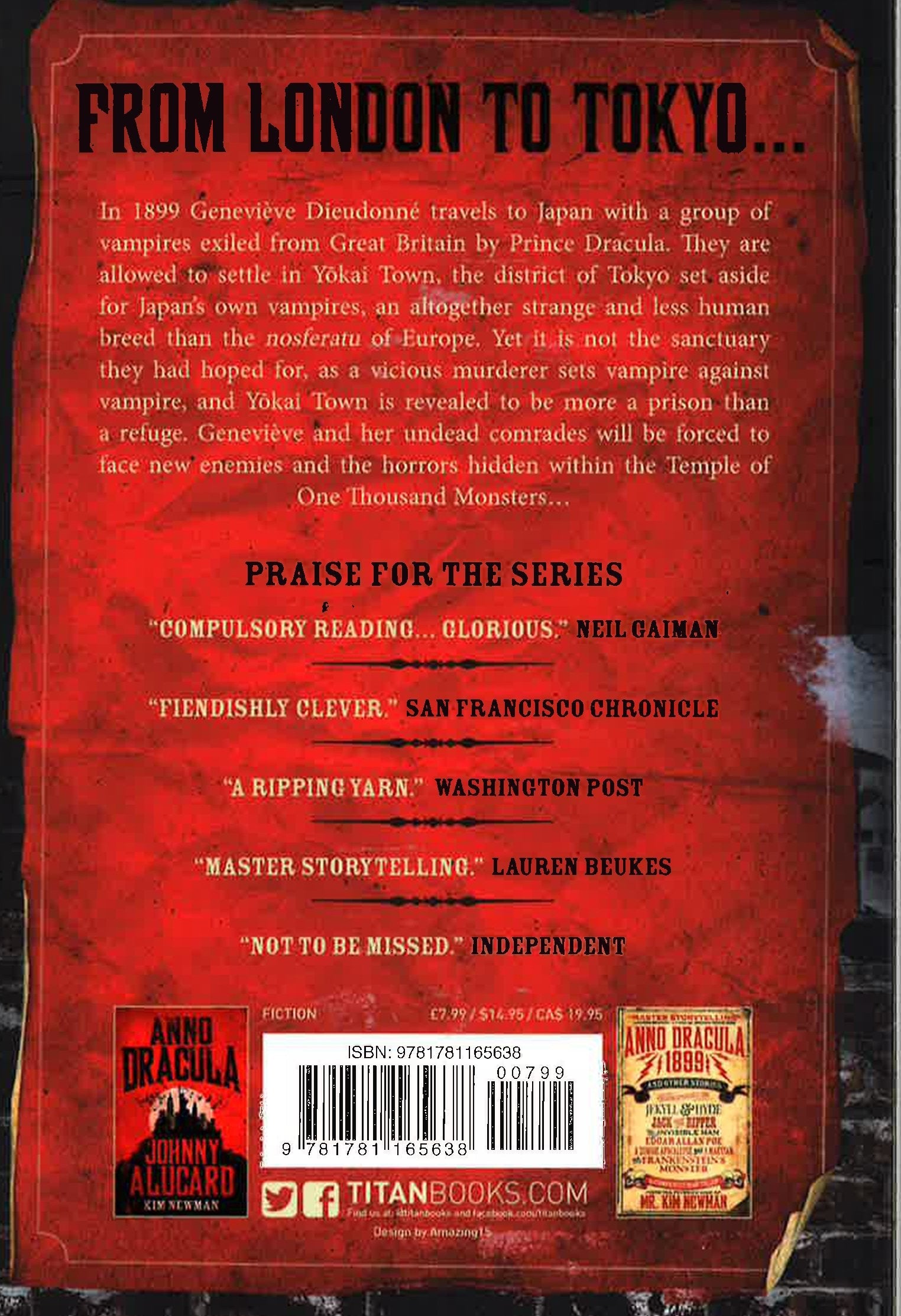 In 1899 Genevieve Dieudonne travels to Japan with a group of vampires exiled from Great Britain by Prince Dracula. They are allowed to settle in Yokai Town, the district of Tokyo set aside for Japan's own vampires, an altogether strange and less human breed than the nosferatu of Europe. Yet it is not the sanctuary they had hoped for, as a vicious murderer sets vampire against vampire, and Yokai Town is revealed to be more a prison than a refuge. Genevieve and her undead comrades will be forced to face new enemies and the horrors hidden within the Temple of One Thousand Monsters . . .