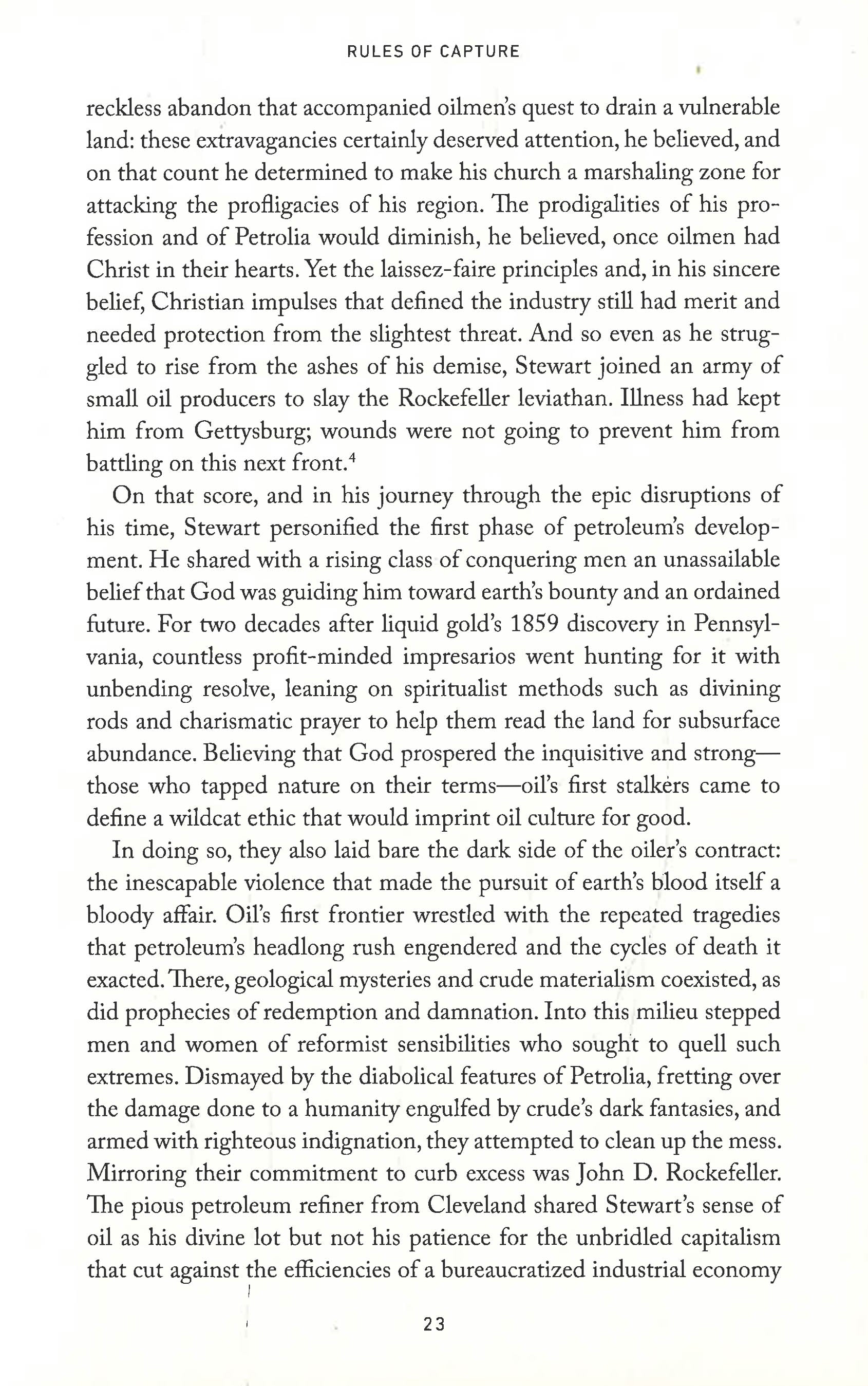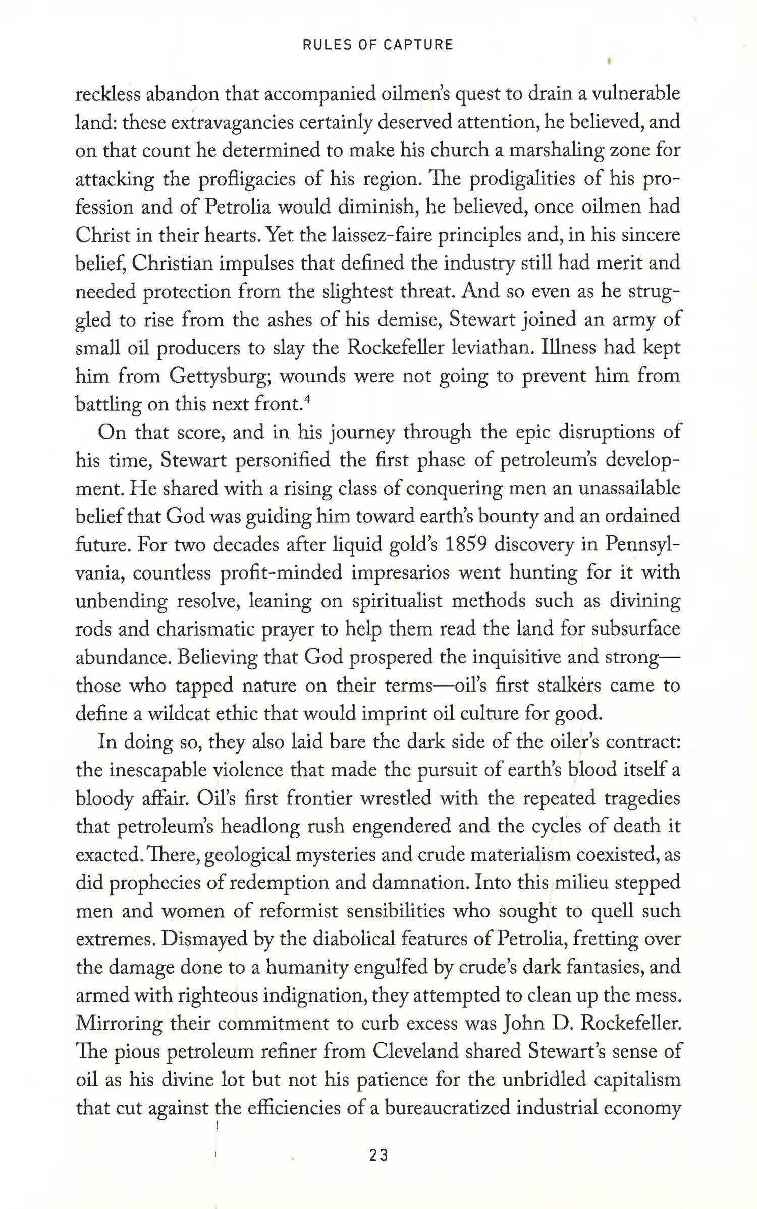 Through extensive research in corporate, political, and community archives in the US and around the world, Dochuk brings to life a vast cast of characters: oil hunters, executives, powerbrokers, politicians, muckrakers, preachers, and ordinary oil patch residents. He profiles the generations of geologists and wildcat drillers who understood petroleum as a blessing from God, and the oil executives who developed an ideology of high-risk, high-reward entrepreneurialism by fusing notions of earthly dominion with trust in the supernatural. He examines how many oil workers and their families weathered the boom-bust economies of extraction zones like the Southwest by drawing closer to Christ. And he recounts how, after making their fortunes in "big oil," families such as the Rockefellers constructed enormous philanthropies and sought to uplift America and the world according to Judeo-Christian values and a vision of well-ordered markets--even as other independent tycoons who embraced a more fervent "wildcat religion" and enthusiasm for laissez-faire capitalism eventually dethroned these centrists and helped to usher conservatives like Ronald Reagan and George Bush to victory.