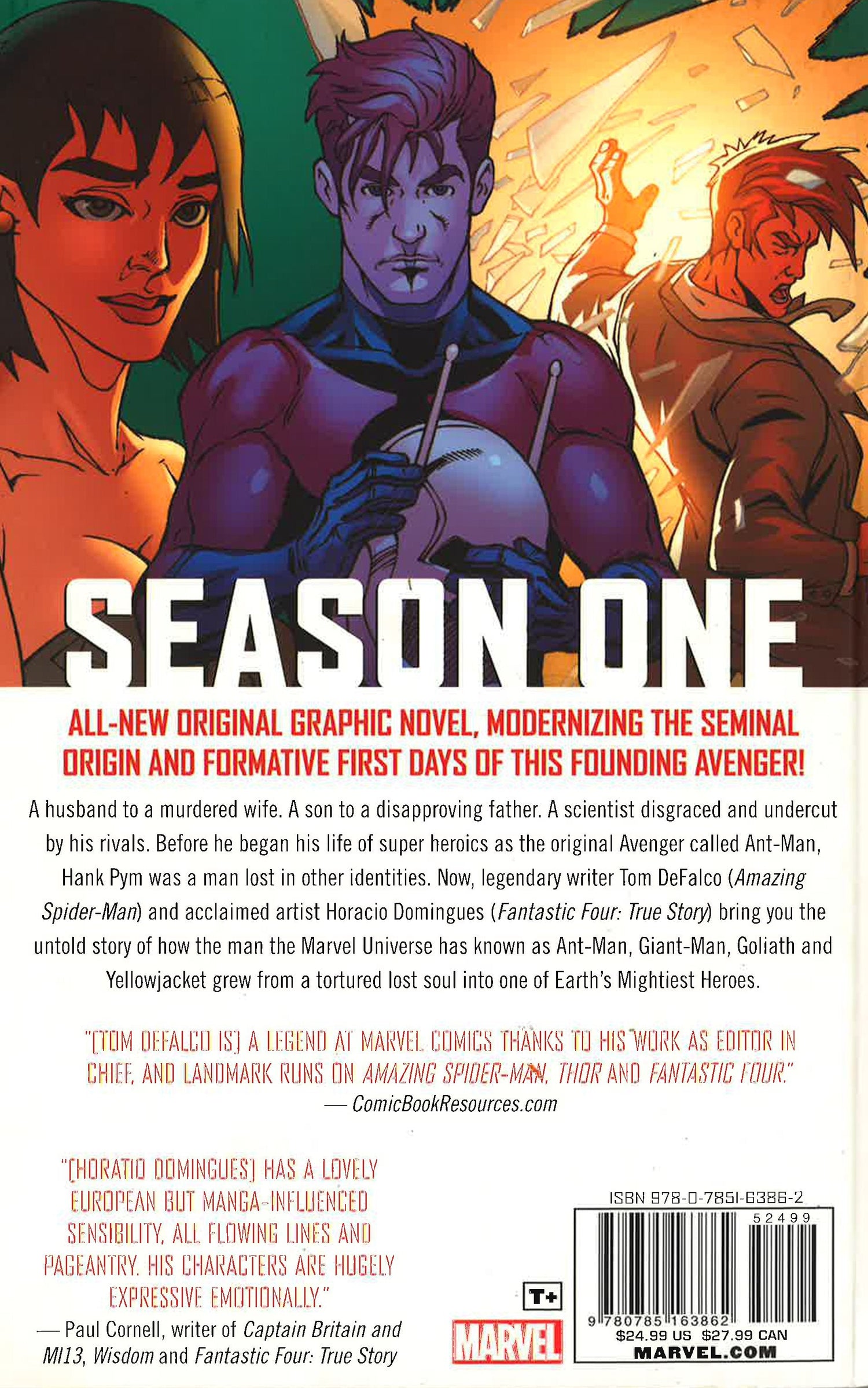 Legendary writer Tom DeFalco (Amazing Spider-Man) and acclaimed artist Horacio Domingues (Fantastic Four: True Story) bring you the origins of the original Avenger, Ant-Man! Hank Pym has had a life full of adventure and success, failure and humiliation! Known by a variety of names like Ant Man, Giant-Man, Goliath and Yellow Jacket, he's been an innovative scientist, a famed super-hero, an abusive spouse and more! What demons drive a man like Hank Pym? How did he begin his career as a super-hero? ANT MAN SEASON tells the story of the man behind the myth and reveals the fears and paranoia that propelled him to greatest heights and the darkest depths!