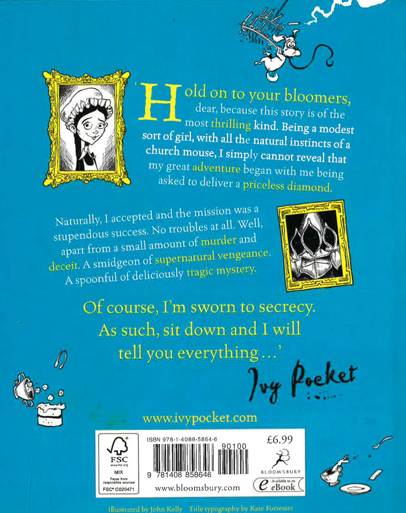 Ivy Pocket is a twelve-year-old maid with the natural instincts of a wartime Prime Minister. Or at the very least, a lighthouse keeper. For the princely sum of GBP500, Ivy has agreed to courier the Duchess of Trinity's most precious possession - the Clock Diamond - from Paris to England, and to put it around the neck of the revolting Matilda Butterfield on her twelfth birthday. Acquiring bosom friends and instant enemies as she goes, it's not long before Ivy finds herself at the heart of a conspiracy involving mischief, mayhem and murder. Illustrated in humorous gothic detail by John Kelly, Anyone But Ivy Pocket is just the beginning of one girl's deadly comic journey to discover who she really is ...