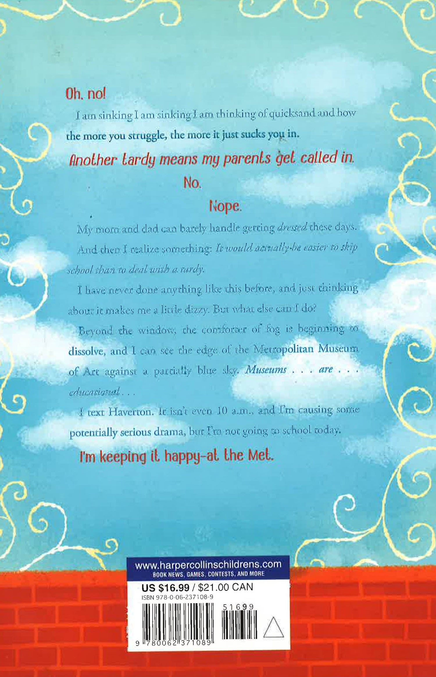 Bestselling middle grade author Lisa Papademetriou is back with a playful, poignant story that will resonate with anyone who’s ever had to learn that love means accepting people—even yourself—for who they really are.Callie never meant to let it go this far. Sure, she may have accidentally-on-purpose skipped a day at her fancy New York City prep school, but she never thought she’d skip the day after that! And the one after that . . . and . . . uh . . . the one after that.But when everything in your real life is going wrong (fighting parents! bullied little brother! girls at school who just. don’t. get. it!) skipping school starts to look like a valid mental-health strategy. And when Callie runs into Cassius, a mysterious and prickly “unschooled” kid doing research at museums all across the city, it seems only natural for her to join him. Because museums are educational, which means they’re as good as going to class. Right?Besides, school can wait. What can’t wait is the mystery of why her grandmother seems to wish she could travel back in time to 1986, or what she wants so much to relive there. As Cassius helps Callie see the world in a whole new light, she realizes that the people she loves are far from perfect—and that some family secrets shouldn’t be secret at all.