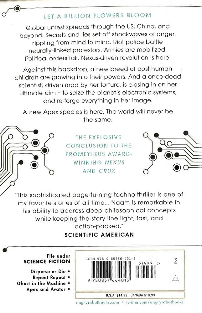 Global unrest spreads through the US, China, and beyond. Secrets and lies set off shockwaves of anger, rippling from mind to mind. Riot police battle neurally-linked protestors. Armies are mobilized. Political orders fall. Nexus-driven revolution is in here.
