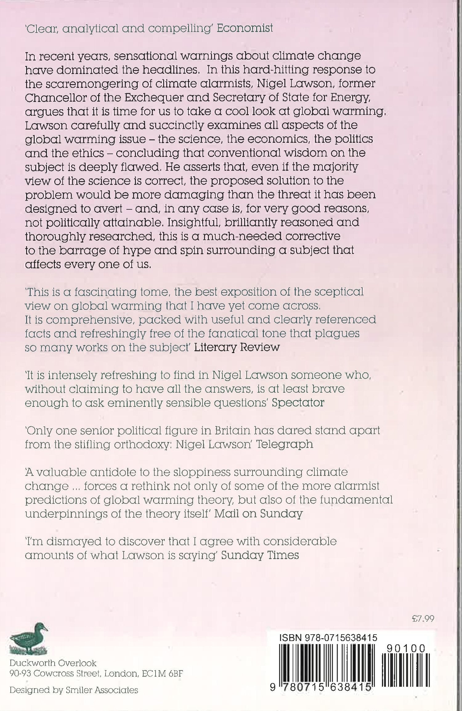 In the 1960s we were warned that the population explosion would lead to mass global starvation. In the 1970s we were warned that the planet was running out of natural resources and that world economic growth would grind to a halt within our lifetimes. When the planet's temperature, which had been gently rising for some 400 years, appeared to be falling again, scientists warned us that we were facing the disaster of a new ice age. In the past year, sensational warnings about climate change have dominated the headlines as we are told that global warming will have disastrous consequences in the very near future unless we take drastic measures now.In this cautious and reasoned treatise on an issue that affects each and every one of us, former Chancellor of the Exchequer, Nigel Lawson, argues that it is time to take a cooler look at global warming. Lord Lawson looks at the facts behind the headlines and explains that science is only part of the story. For governments to make informed decisions about the path ahead they must listen to economists as well as scientists, utilising economic forecasting to assess the likely evolution of the world economy, and even more urgently, economic analysis: what is the most cost-effective way of tackling this issue? We also need an understanding of exactly what measures are politically realistic on a global scale. At a time when politicians and the media are stirring up public and political hysteria on the subject of climate change, Lord Lawson has written a timely disquisition urging us to take into account all the facts in order to deal with the threat of global warming.
