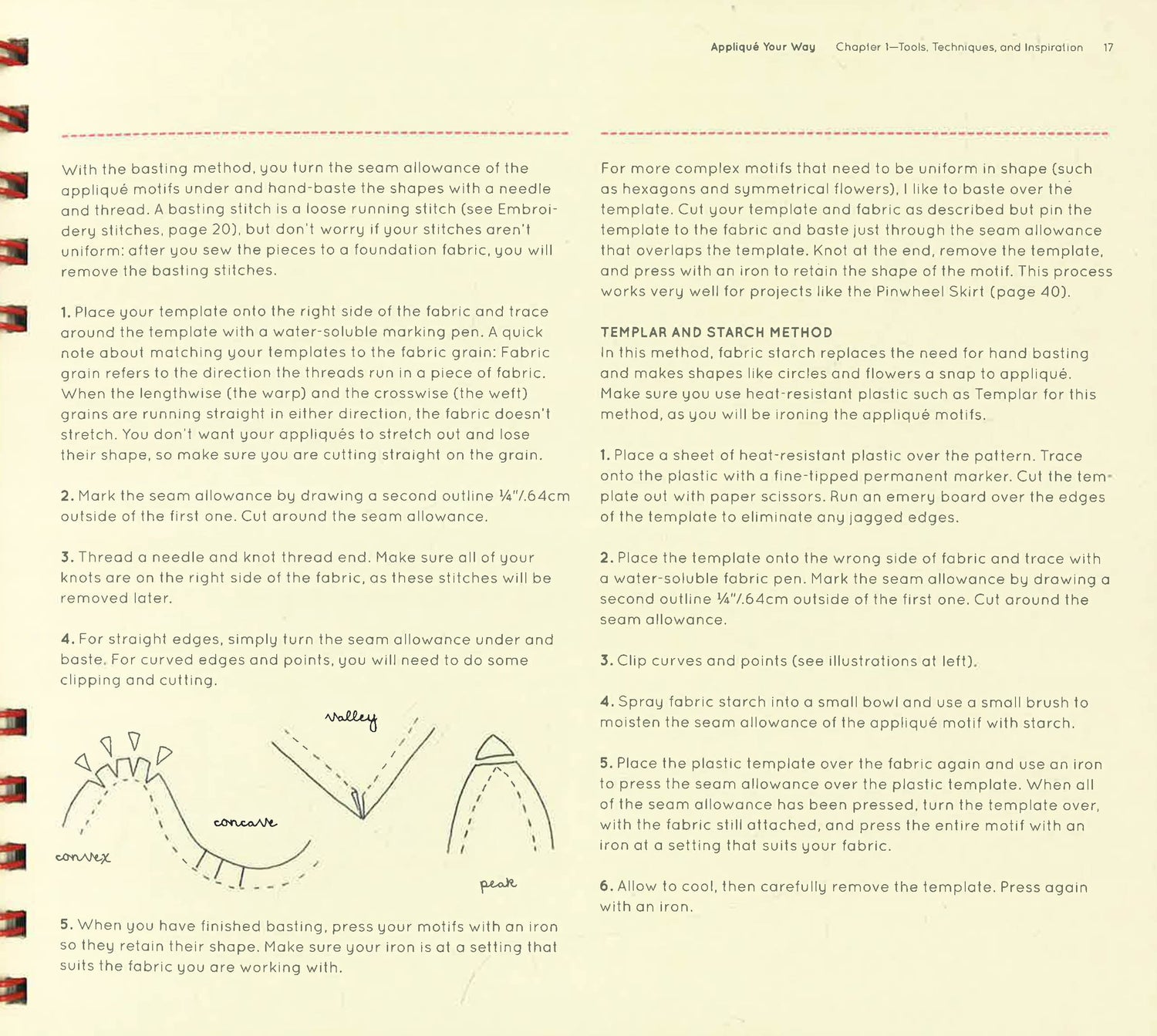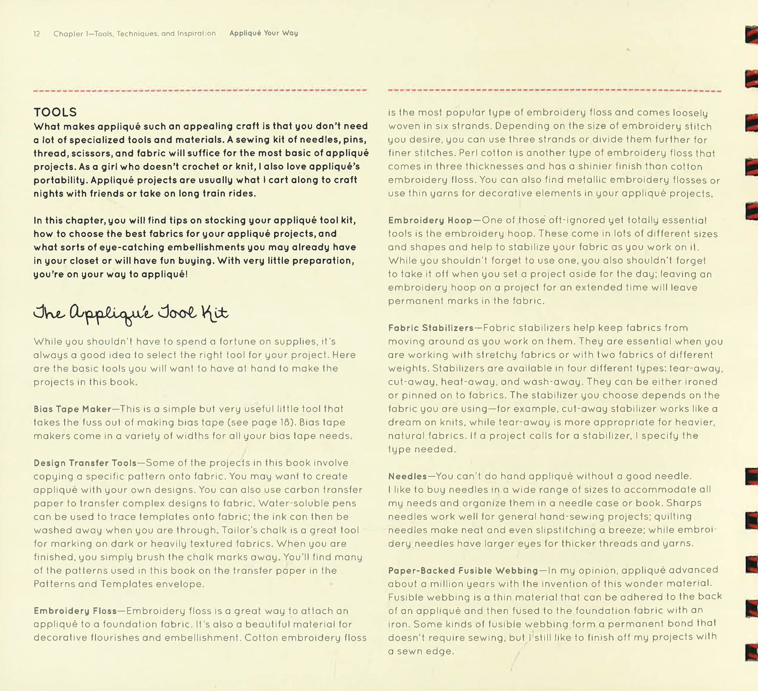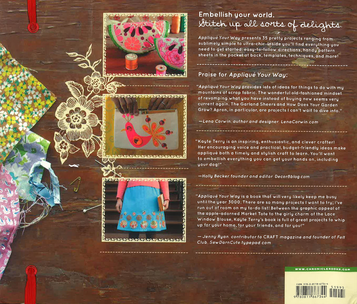 This revolutionary guide puts at stitchers' fingertips everything they need to learn the craft of applique. Kayte Terry, crafter extraordinare, shows how to master decorative stitches, create original templates, find inspiration in the everyday, and much much more. Best of all, we've formatted the book for easy use with lay-flat Wire-O binding and pattern pieces in the pocket at back. No wrestling with a copy machine to enlarge or shrink. With a few snips, readers will have everything they need to create a Gone Dotty A-line Skirt, a reverse applique Market Tote, a Felted Faux Bois Scarf, and 30+ more projects ranging from sublimely simple to ultra-chic.