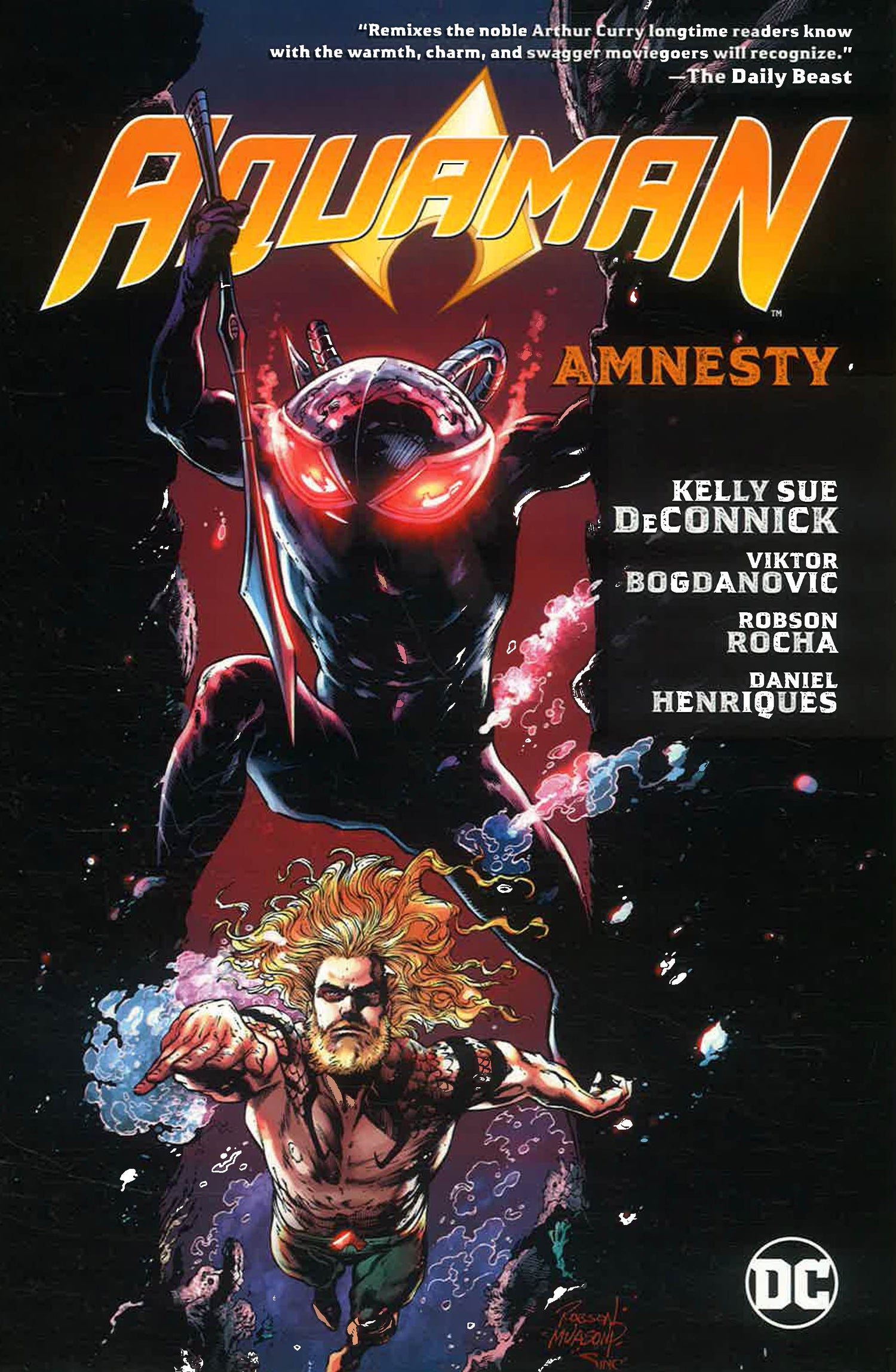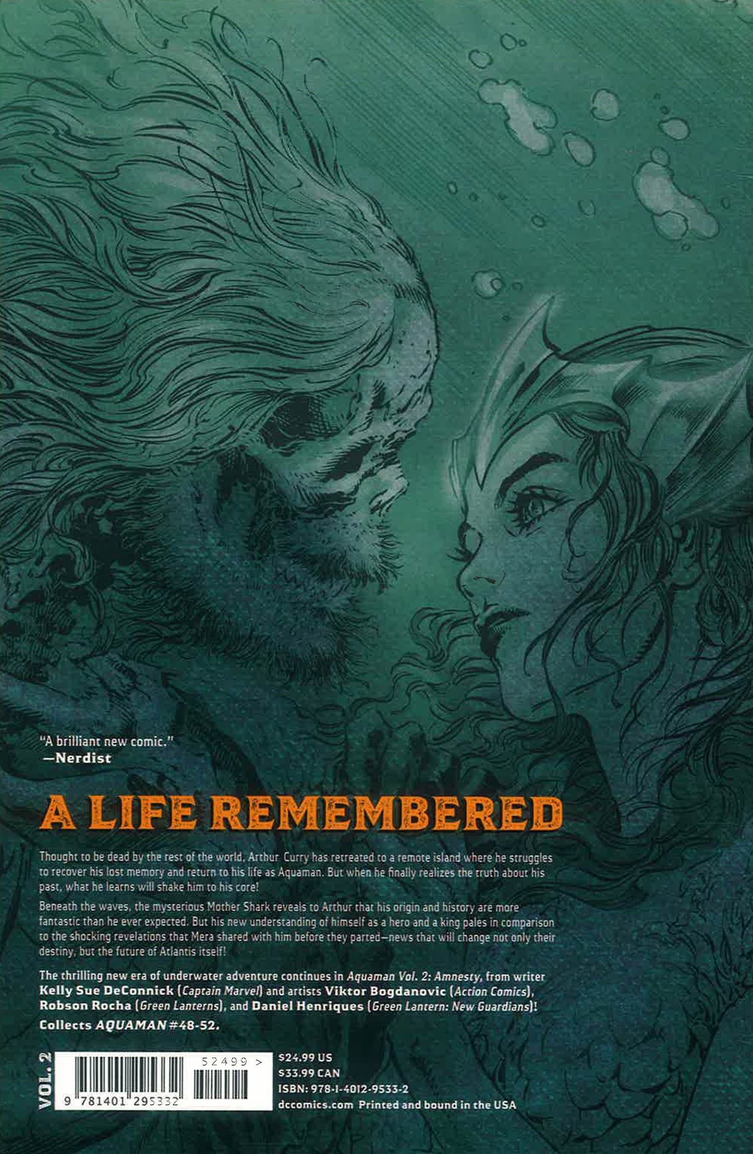 The thrilling new era of underwater adventure continues in Aquaman Vol. 2: Amnesty, from writer Kelly Sue DeConnick (Captain Marvel) and artists Viktor Bogdanovic (Action Comics), Robson Rocha (Green Lanterns), and Daniel Henriques (Green Lantern: New Guardians)!Collects AQUAMAN #48-52.
