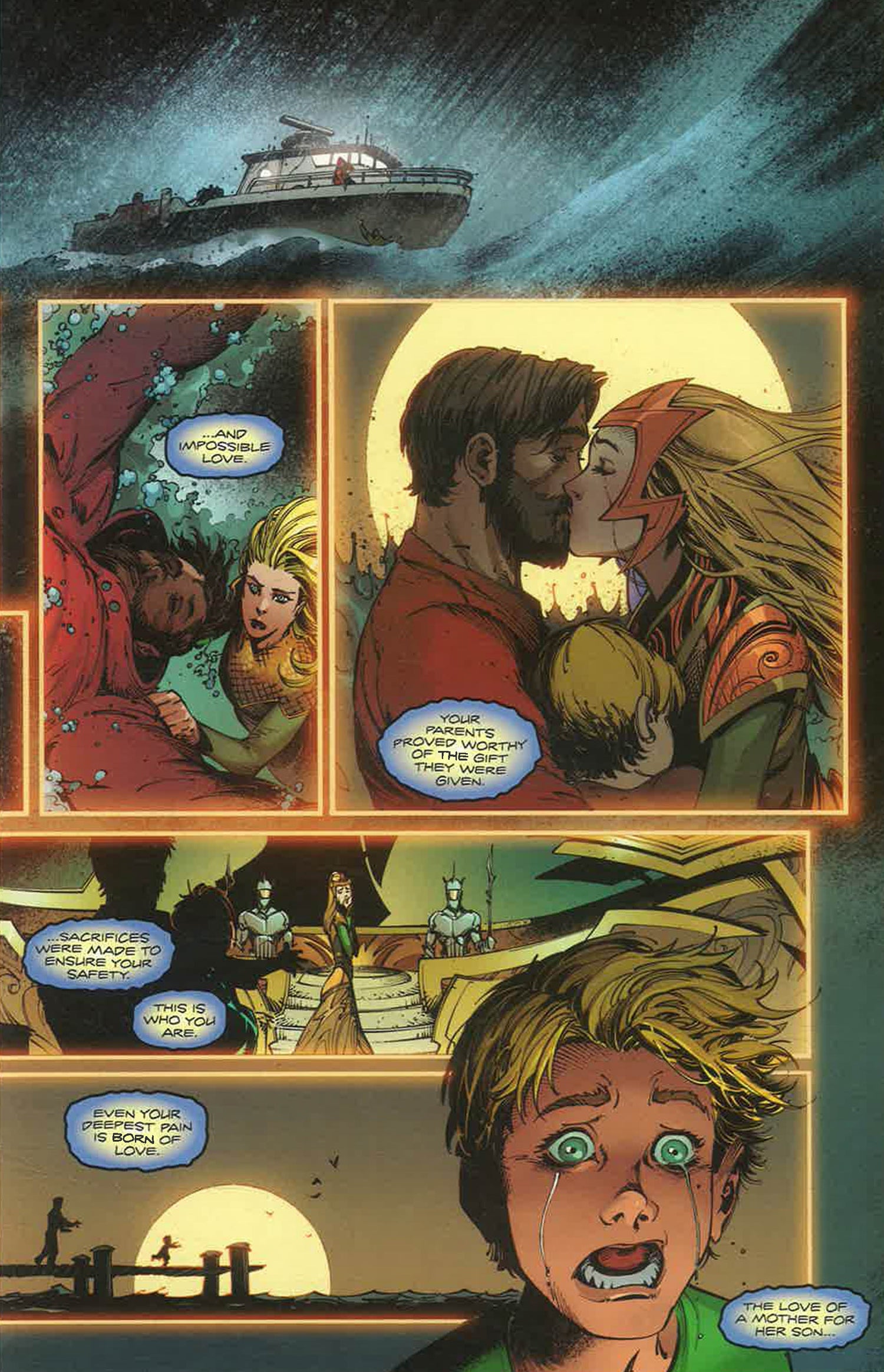 Beneath the waves, the mysterious Mother Shark reveals to Arthur that his origin and history are more fantastic than he ever expected. But his new understanding of himself as a hero and a king pales in comparison to the shocking revelations that Mera shared with him before they parted--news that will change not only their destiny, but the future of Atlantis itself!