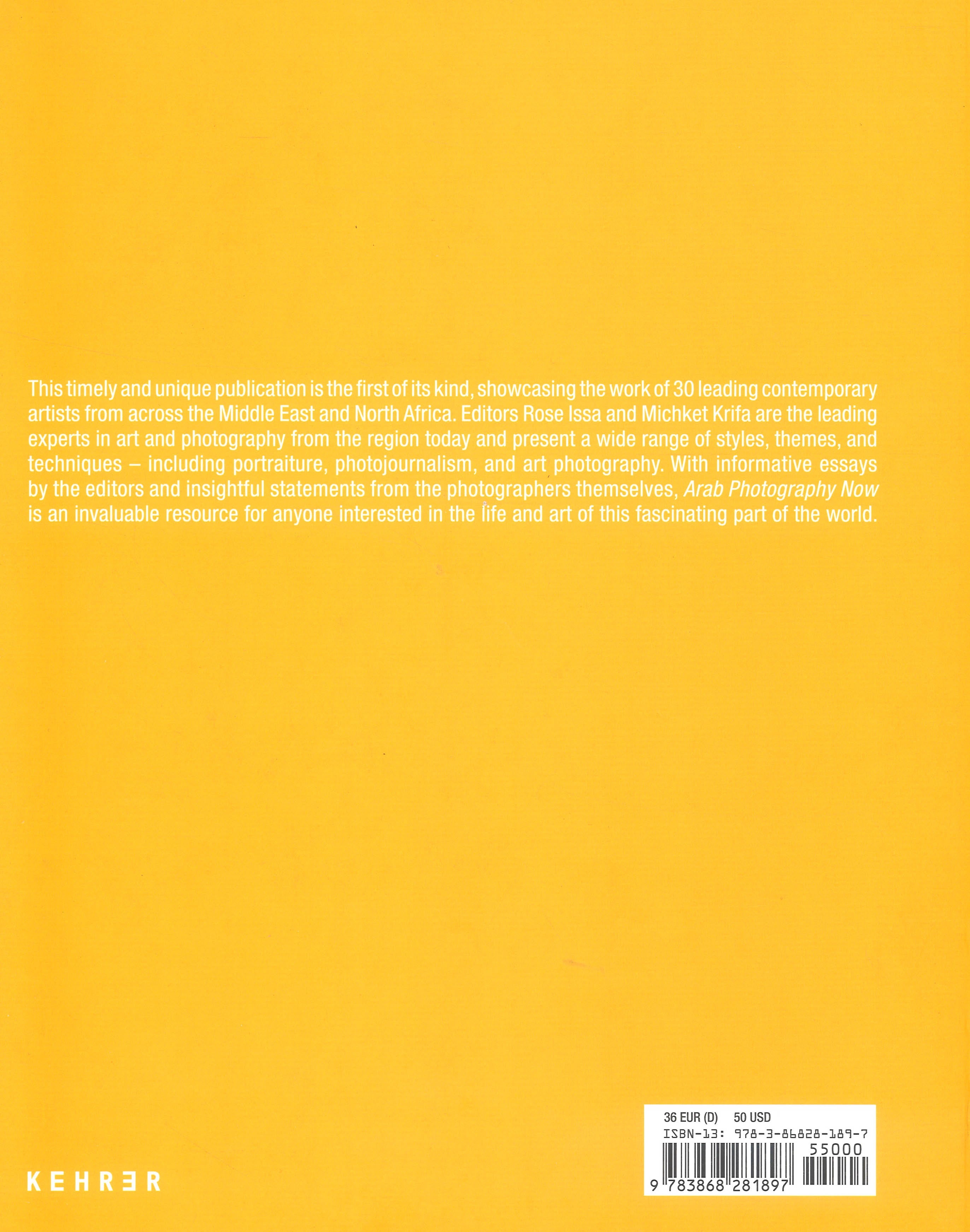 This publication shows the visual dynamics of Arab photography in all its fascinating beauty, revealing a rich new aesthetic. We see works of great political and cultural relevance by thirty-six photographers. Their visual imagery constitutes an exciting and instructive journey for the reader. Each of the contributing photographers was asked to supply a statement on his or her life and experience as an artist.
