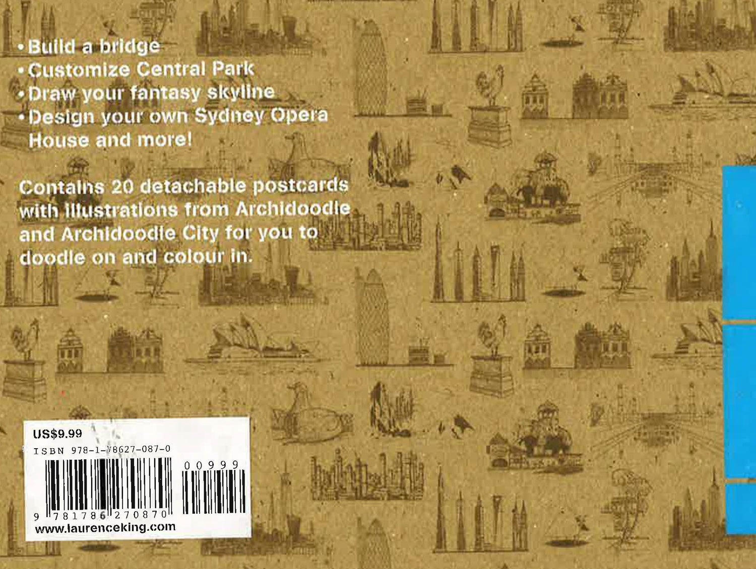 Fans of Archidoodle and Archidoodle City can now send their best doodles through the post! 20 postcards containing images from the books can be doodled on and coloured. Share your best bridge design with a friend or wow your relatives with your futuristic cityscape. Archidoodle Postcards is the ideal gift for architects of all ages.