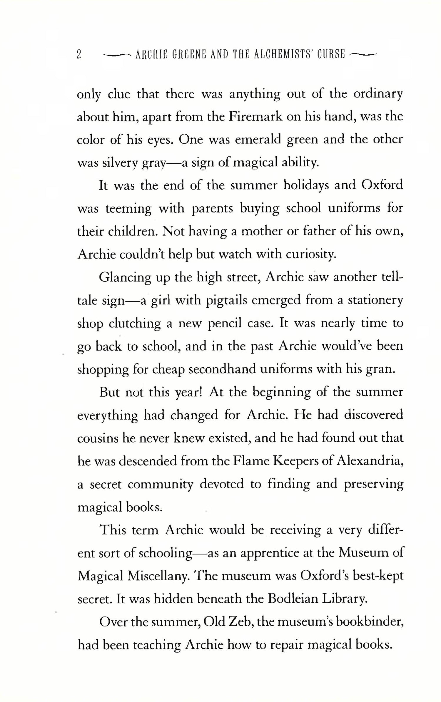 It’s been nearly three hundred years since anyone’s received the Golden Circle firemark, but when the symbol appears on Archie’s palm, it marks the resurgence of the Alchemists’ Club and its dreaded curse.Archie Greene is doomed, and he’s got the firemark to prove it. The last time the Golden Circle appeared, the marked apprentices were never heard from again. The rebirth of the Alchemists’ Club is met with uneasiness, but it’s clear the present is not so different from the past. The charms protecting the magical texts the Flame Keepers have sworn to look after are fading. If the spells are not rewritten, the little magic left in the world may fall into the hands of the dangerous Greaders.But can Archie and his friends rewrite the magic in time or will the Alchemists’ curse strike once more?