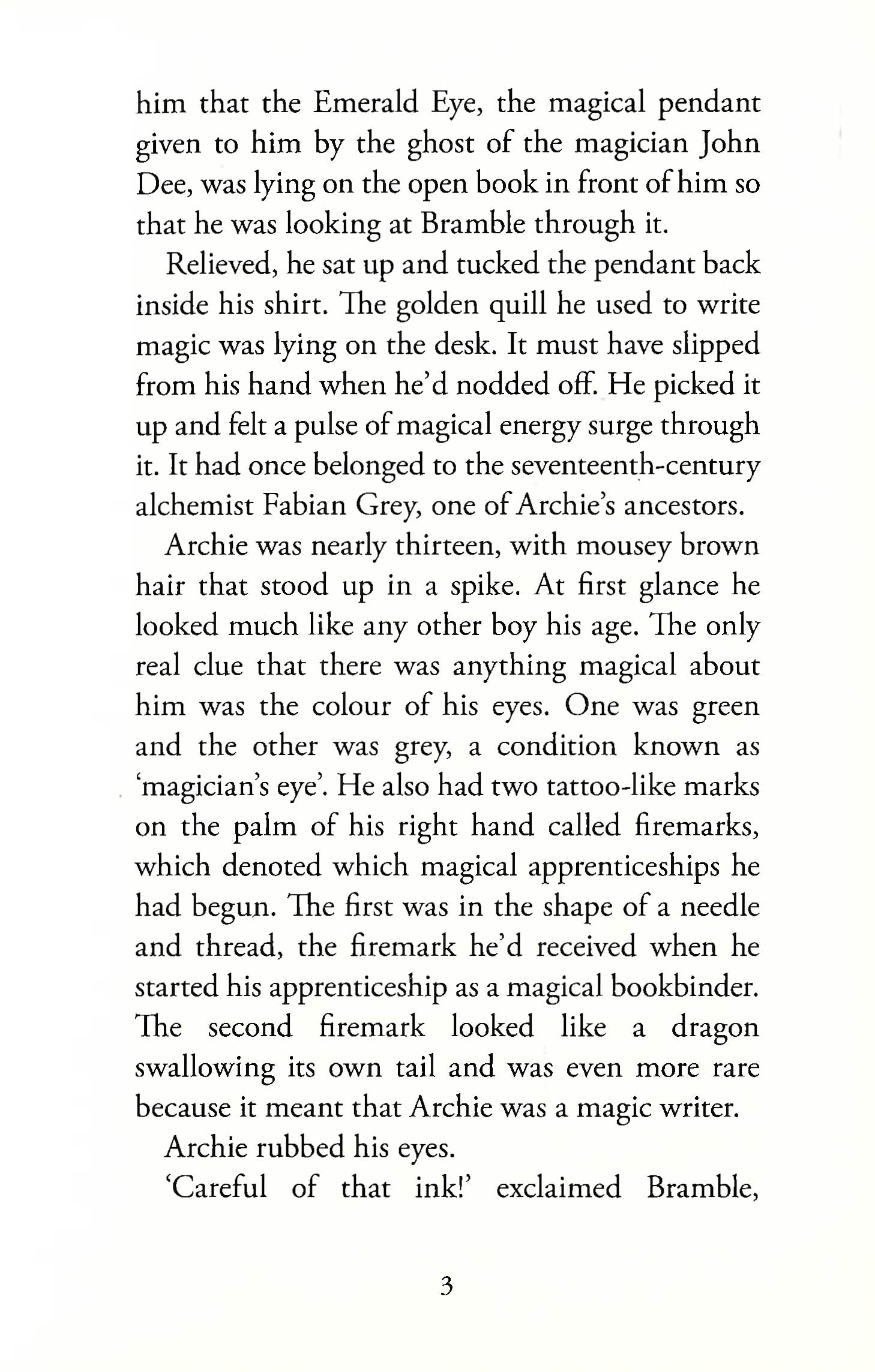Inside the Scriptorium in the Museum of Magical Miscellany, a black flame flickered across an open page. The letters of the spell twisted and distorted in the dark fire until there was nothing left but cinders. Archie and the Alchemist's Club have been rewriting the magical spells contained within books, but someone is drawing on their power for evil purposes. The museum Elders confirm that their worst fears have come true - the Dark Flame is rising, and they can only stop it by uncovering Fabian Grey's prophecy. Archie vows to help - but is he more closer to the prophecy than he knows? And who is behind the mysterious notes for him, labelled F. G, and with the sign of a raven? With traitors at the museum, and dark magic on the rise, it will be up to Archie to uncover his destiny, protect his friends, and save magic as he knows it.
