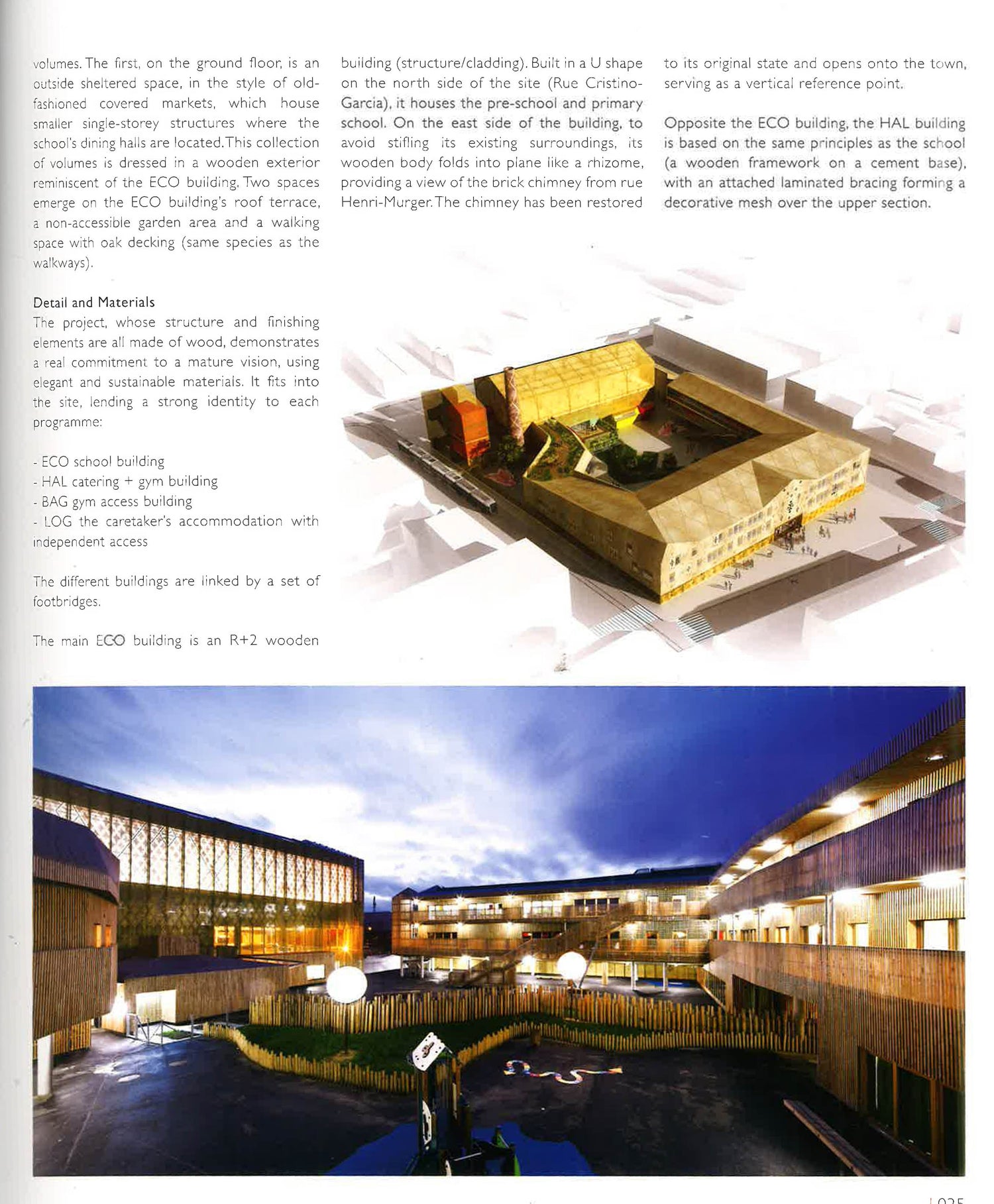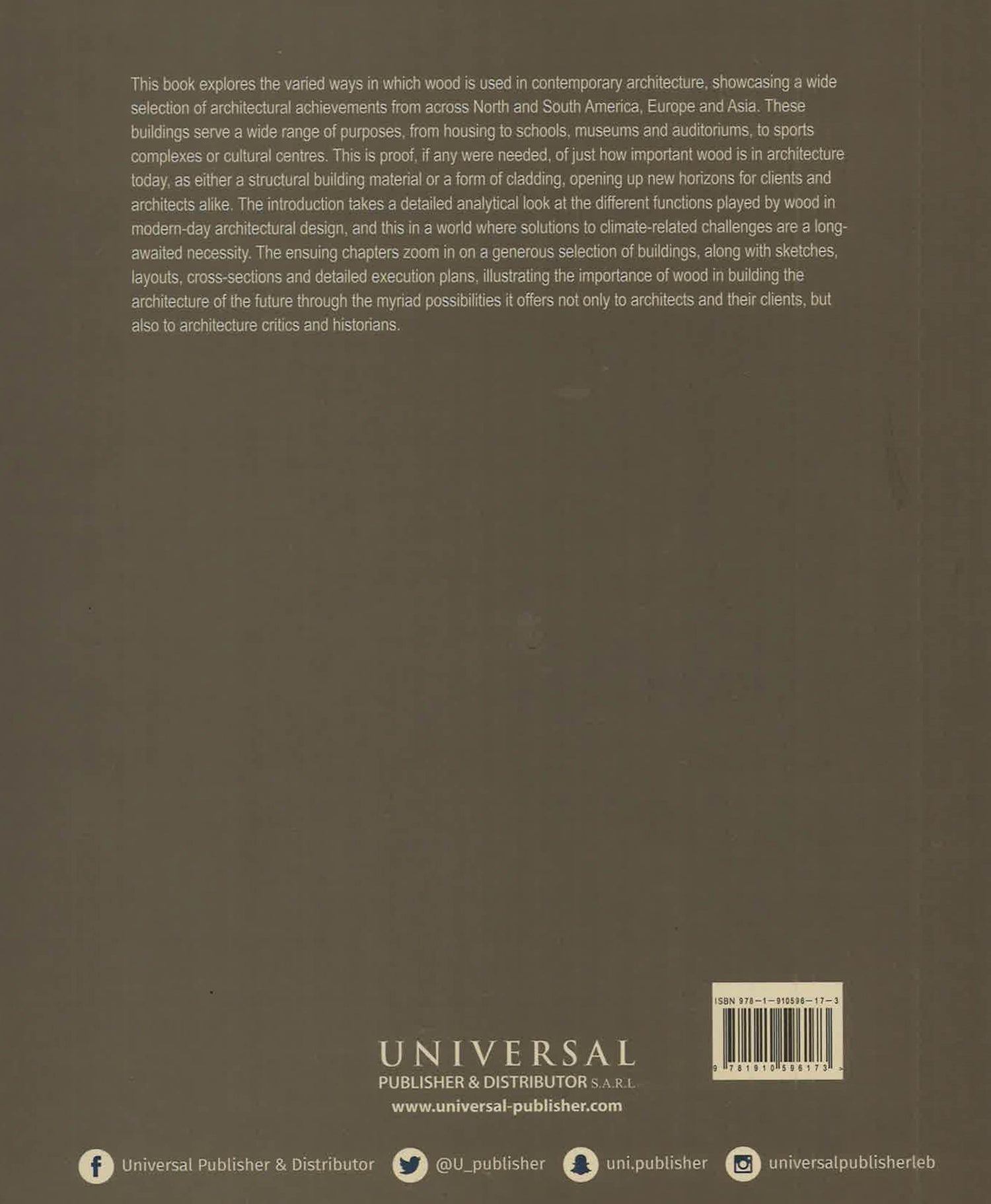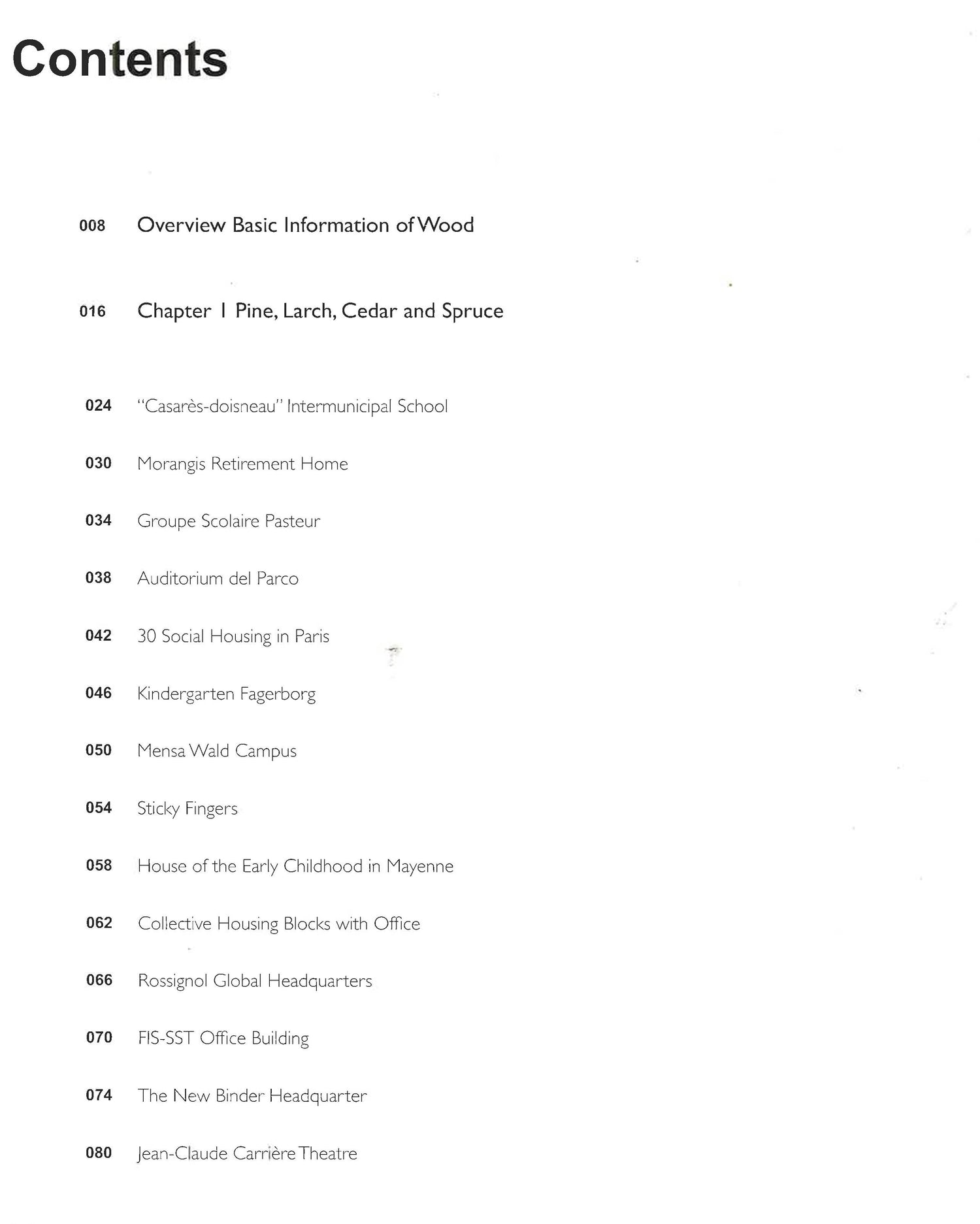 This book explores the varied ways in which wood is used in contemporary architecture, showcasing a wide selection of architectural achievements from across North and South America, Europe, and Asia. These buildings serve a wide range of purposes, from housing to schools, museums and auditoriums, to sports complexes or cultural centres. This is proof, if any were needed, of just how important wood is in architecture today, as either a structural building material or a form of cladding, opening up new horizons for clients and architects alike. The introduction takes a detailed analytical look at the different functions played by wood in modern-day architectural design, and in a world where solutions to climate-related challenges are a longawaited necessity. The ensuing chapters zoom in on a generous selection of buildings, along with sketches, layouts, cross-sections, and detailed execution plans, illustrating the importance of wood in building the architecture of the future through the myriad possibilities it offers, not only to architects and their clients, but also to architecture critics and historians.