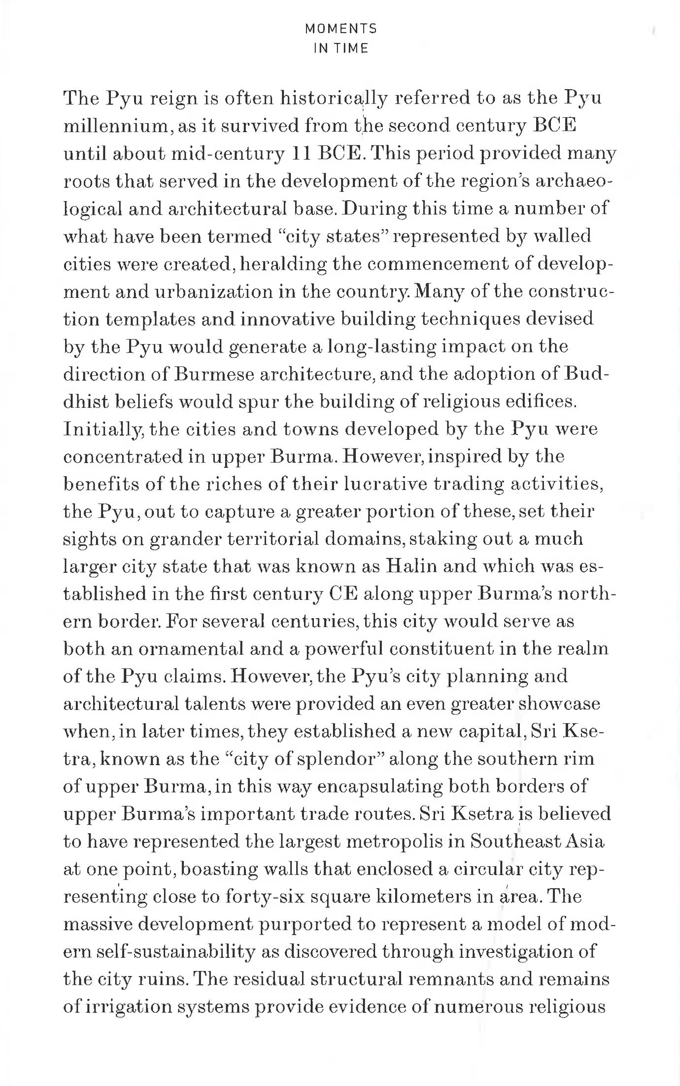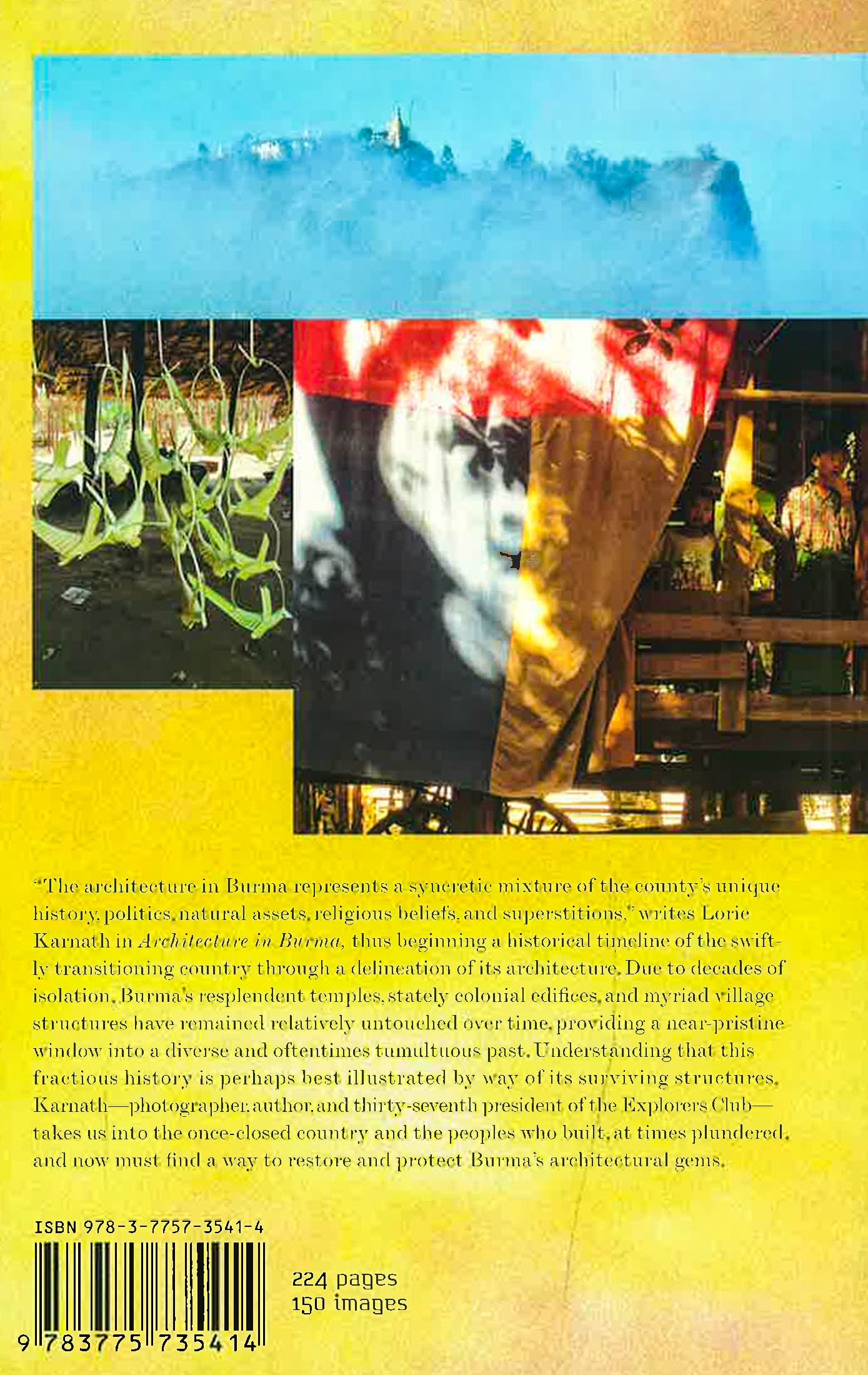 Architecturally, Burma is both a melting pot and a museum. Boasting a wealth of influences from all of the countries that surround it--India, China, Laos, Thailand, Bhutan, Laos--Burma has also preserved many key examples of religious architectural styles no longer extant in their countries of origin, most famously in Pagan, the country's capital in the ninth to twelfth centuries. Alongside the pagodas of Pagan, Burma's architectural jewel is probably the Shwe Dagon pagoda in Rangoon, a magnificent social hub in the city's center that has also been the site of much political turmoil. During colonial rule, many extraordinary Victorian civic buildings were erected, especially in Rangoon and Mandalay; throughout the country, Buddhist monasteries and villages also offer many fascinating varieties of architecture. Despite a few recent instances of architectural modernization, Burma remains largely an open-air museum, whose buildings embody and chronicle centuries of dynastic squabble and migration of cultural influences. (Such quarrels frequently resulted in new rulers packing up entire palaces and other structures and transporting these by elephant to establish a new seat of government or capital elsewhere.) Authored by Lorie Karnath, President of the Explorer's Club in New York, Architecture in Burma is the first serious overview of the astounding architectural treasures of this long-isolated country.