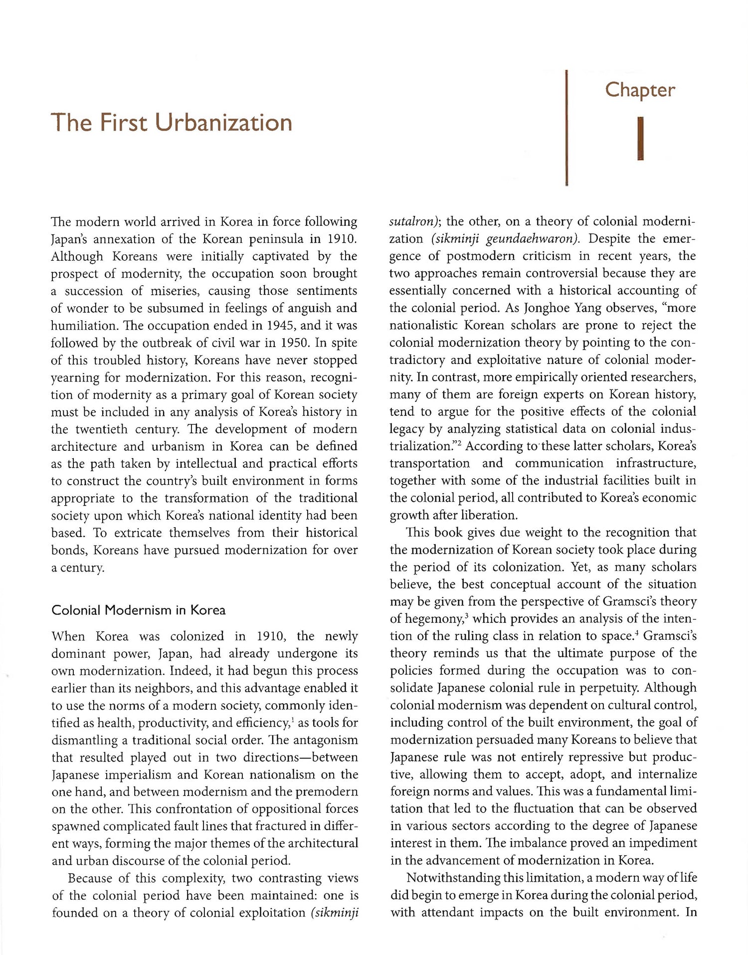Although modernisation in Korea started more than a century later than in the West, it has worked as a prominent ideology throughout the past century-in particular it has brought radical changes in Korean architecture and cities. Traditional structures and ways of life have been thoroughly uprooted in modernity's continuous negation of the past. This book presents a comprehensive overview of architectural development and urbanization in Korea within the broad framework of modernization.Twentieth-century Korean architecture and cities form three distinctive periods. The first, defined as colonial modern, occurred between the early twentieth century and 1945, when Western civilization was transplanted to Korea via Japan, and a modern way of life, albeit distorted, began taking shape. The second is the so-called developmental dictatorship period. Between 1961 and 1988, the explosive growth of urban populations resulted in large-scale construction booms, and architects delved into modern identity through the locality of traditional architecture. The last period began in the mid-1990s and may be defined as one of modernization settlement and a transition to globalization. With city populations levelling out, urbanization and architecture came to be viewed from new perspectives.Inha Jung, however, contends that what is more significant is the identification of elements that have remained unchanged. Jung identifies continuities that have been formed by long-standing relationships between humans and their built environment and, despite rapid modernization, are still deeply rooted in the Korean way of life. For this reason, in the twentieth century, regionalism exerted a great influence on Korean architects. Various architectural and urban principles that Koreans developed over a long period while adapting to the natural environment have provided important foundations for architects' works. By exploring these sources, this carefully researched and amply illustrated book makes an original contribution to defining modern identity in Korea's architecture, housing, and urbanism.