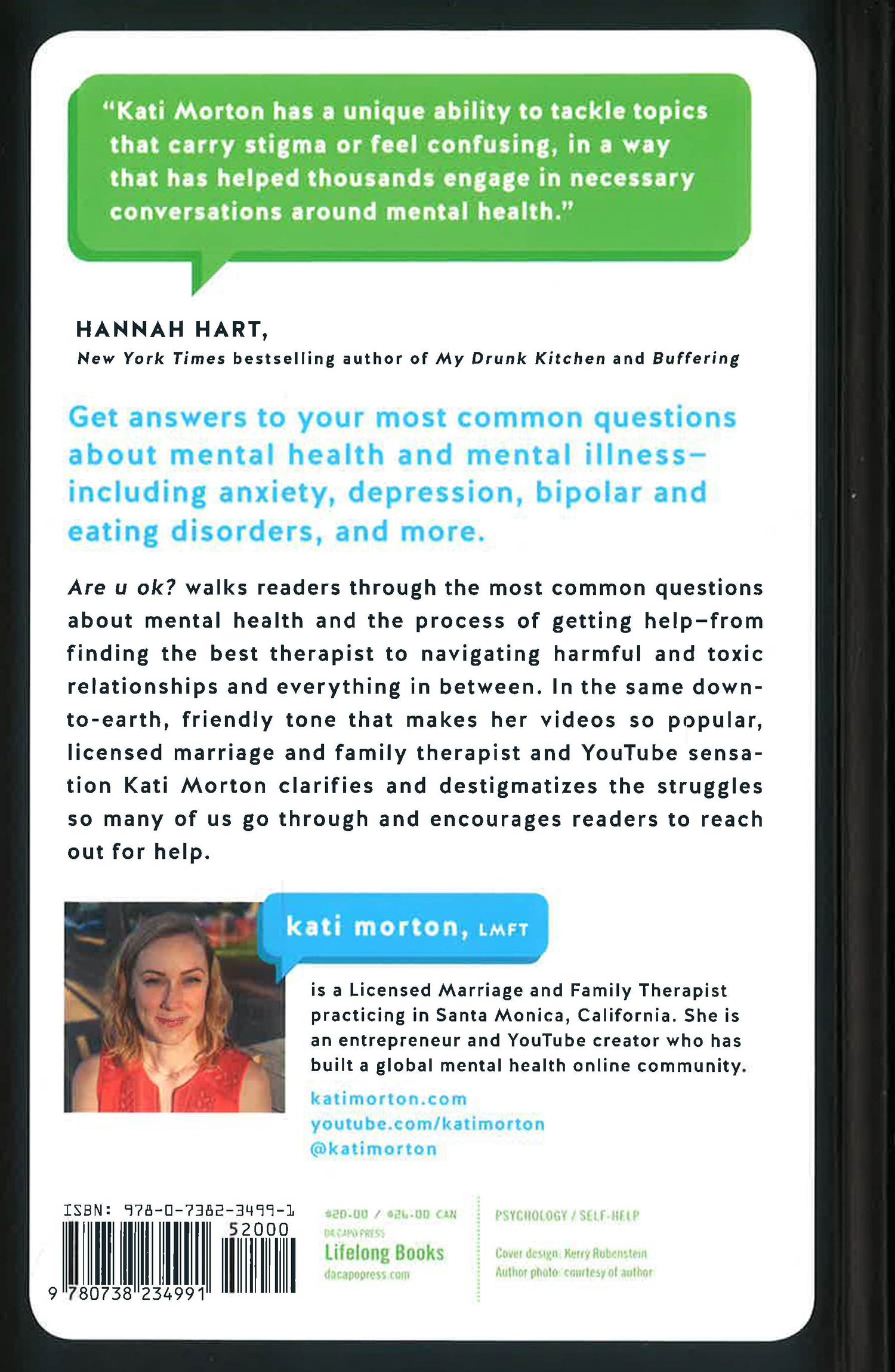 Everyone struggles with mental health issues from time to time, but the greatest level of misunderstanding comes from knowing the difference between mental health and mental illness, figuring out whether we need professional help and, if so, how to find it. Are u ok? walks readers through the most commonly asked questions about mental health and the process of getting help. From finding the best therapist to navigating harmful and toxic relationships and everything in between, licensed family therapist and YouTube sensation Kati Morton clarifies and de-stigmatizes the struggles so many of us go through, and encourages readers to reach out for help. What are the red flags of a mental health issue? How do you go about making a first therapy appointment? How do you know if your therapist is a good fit for you? What are the best ways of talking about mental health with your family, friends and colleagues? There are so many questions and concerns, and in the down-to-earth, friendly tone that makes Kati Morton so popular on YouTube, Are u ok? informs and reminds us that we can get through the difficult times and we are never alone.