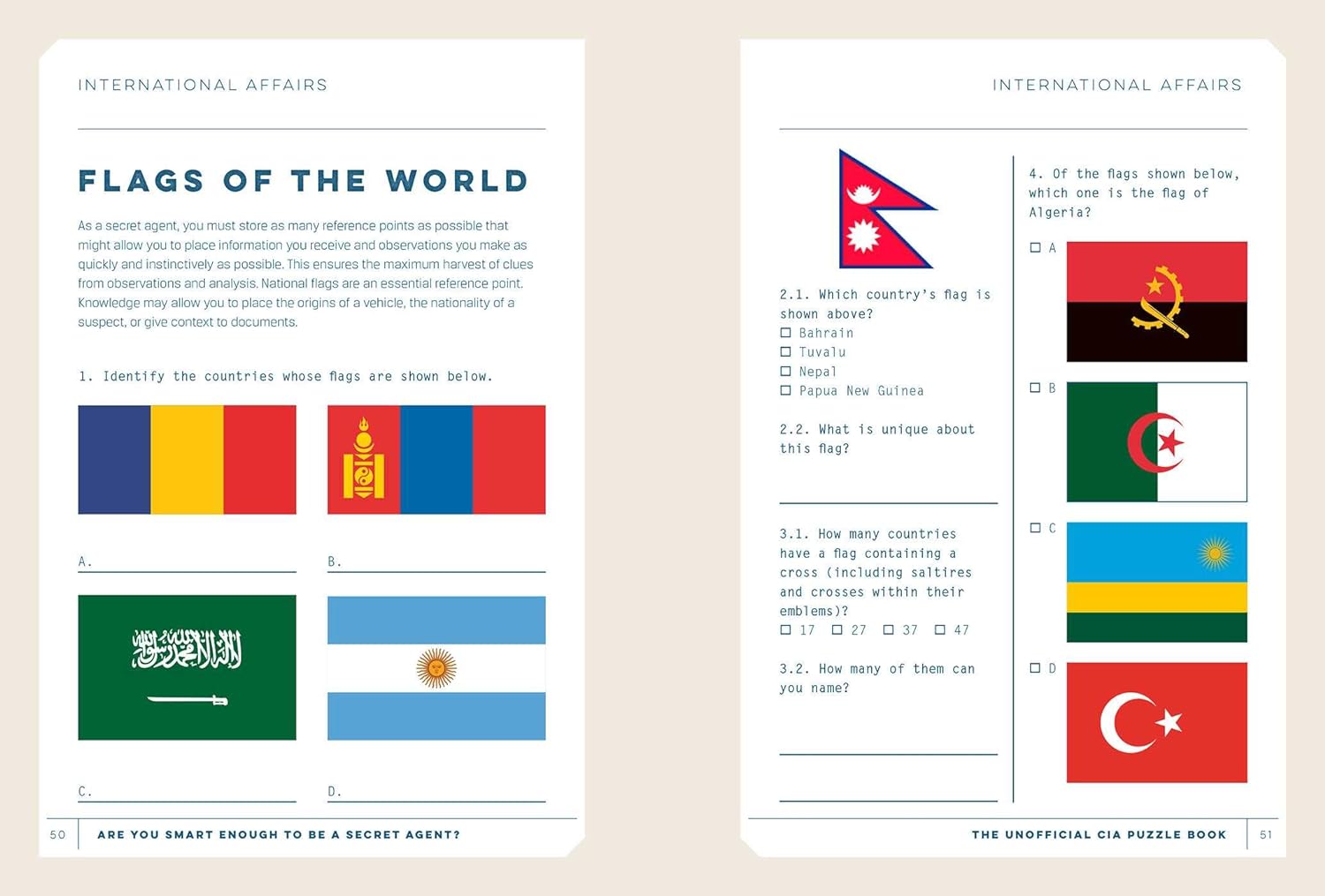 Do you have what it takes to live a life of intrigue and deception, matching your wits with adversaries on the world stage? With more than 1,000 puzzles, quizzes, and hypothetical scenarios, you can measure your knowledge and decision-making skills against the standards established by the CIA for becoming a government agent. Quizzes will challenge your mastery of geopolitics and world history, and exercises such as decoding encrypted messages put your problem-solving skills to use.