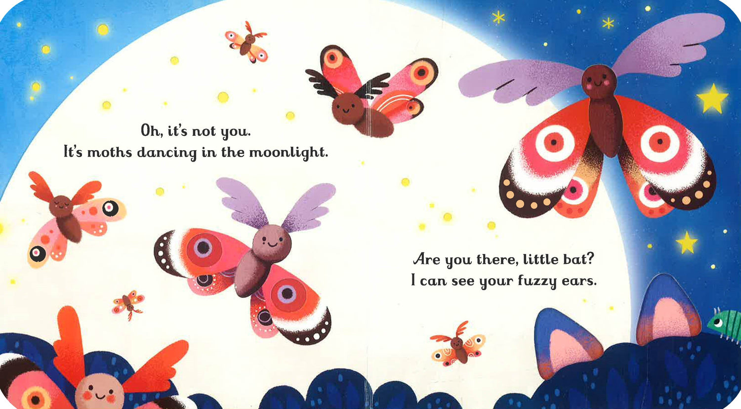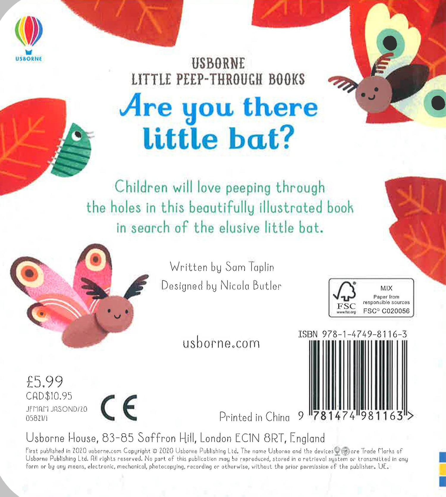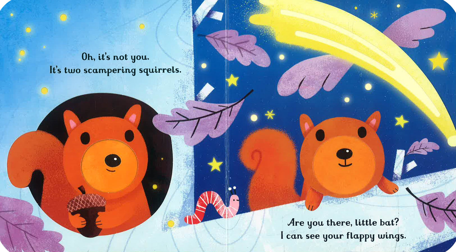 Little bat is hiding! Children will love peeping through the holes in the pages of this charmingly illustrated book in search of the elusive bat. With fingertrails to touch and details to talk about, there are lots of surprises along the way.
