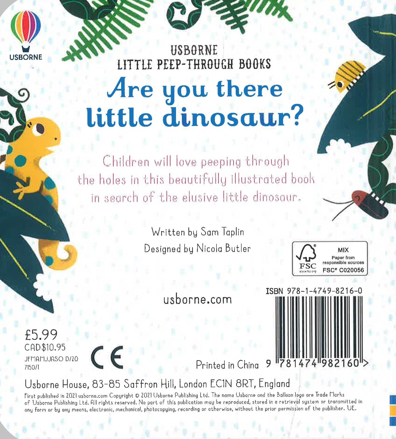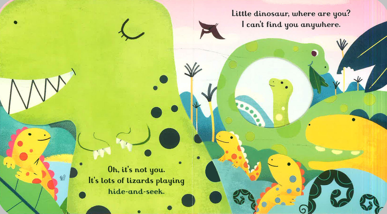 Little dinosaur is hiding! Little children will love peeping through the holes in the pages of this beautifully illustrated book to try and find the elusive dinosaur. There are finger-trails to touch and lots of details to spot and talk about together.