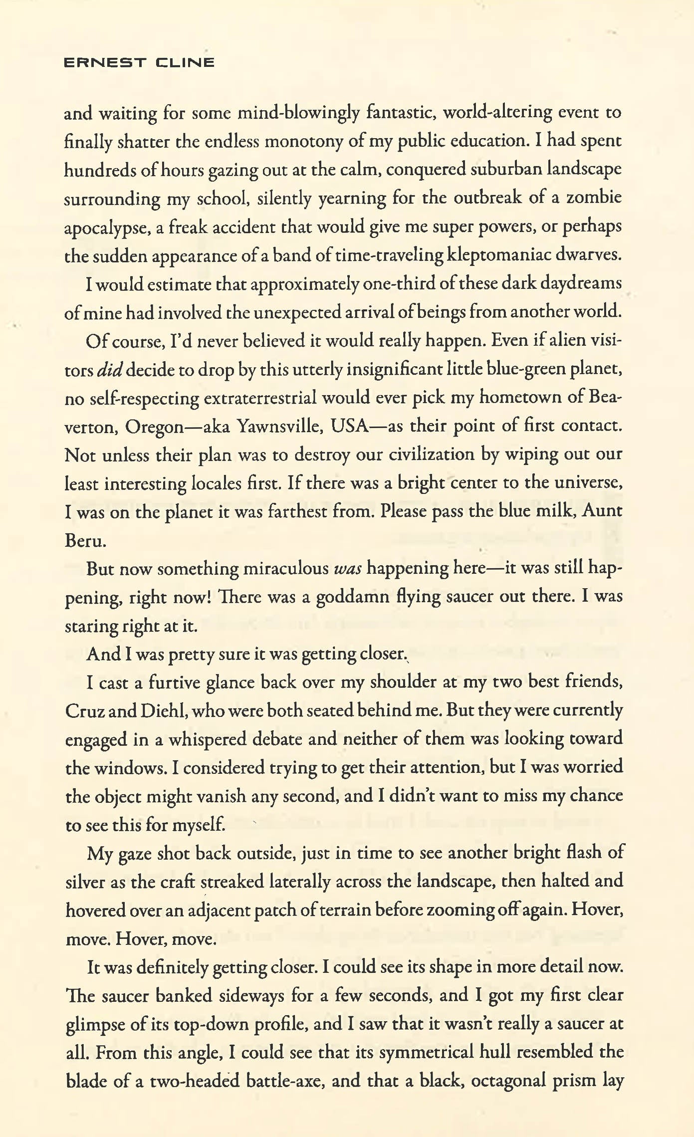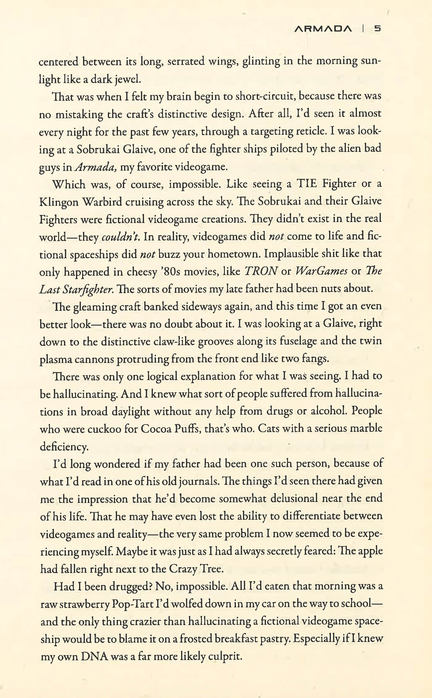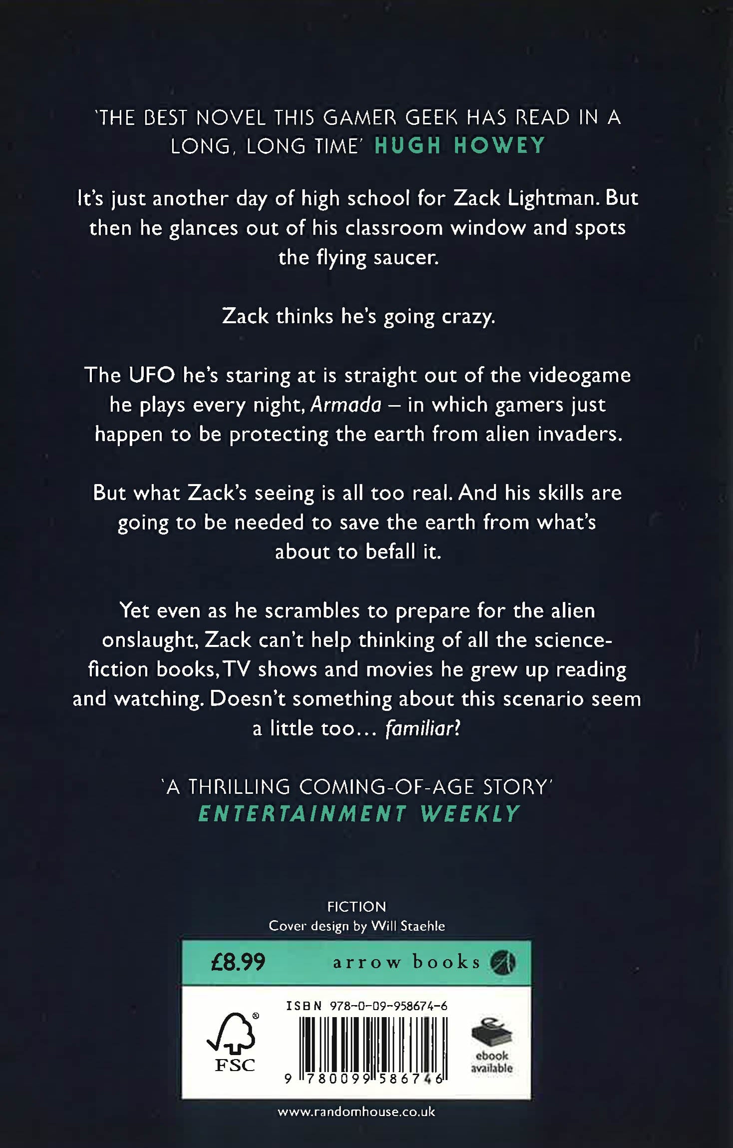 FROM THE BESTSELLING AUTHOR OF READY PLAYER ONE, NOW A MAJOR MOTION PICTURE DIRECTED BY STEVEN SPIELBERG'[A] masterful tale of Earth's desperate struggle against a powerful alien foe.' - Andy Weir, bestselling author of The Martian**************************************************************It's just another day of high school for Zack Lightman. He's daydreaming through another boring math class, with just one more month to go until graduation and freedom-if he can make it that long without getting suspended again. Then he glances out his classroom window and spots the flying saucer. At first, Zack thinks he's going crazy.A minute later, he's sure of it. Because the UFO he's staring at is straight out of the videogame he plays every night, a hugely popular online flight simulator called Armada-in which gamers just happen to be protecting the earth from alien invaders. But what Zack's seeing is all too real. And his skills-as well as those of millions of gamers across the world-are going to be needed to save the earth from what's about to befall it. Yet even as he and his new comrades scramble to prepare for the alien onslaught, Zack can't help thinking of all the science-fiction books, TV shows, and movies he grew up reading and watching, and wonder: Doesn't something about this scenario seem a little too... familiar? Armada is at once a rollicking, surprising thriller, a classic coming of age adventure, and an alien-invasion tale like nothing you've ever read before-one whose every page is infused with author Ernest Cline's trademark pop-culture savvy.Here's what everyone's saying about the epic follow-up to READY PLAYER ONE:'a modern classic' - R.M. Rangeley on Amazon, 5 stars'A modern masterpiece full of a new style of literary magic' - Spiros Kagadis on Amazon, 5 stars'Excellent. Even better than Ready Player One.' - David Hay on Amazon, 5 stars'One of my favourite books of all time. Incredibly well written' - Erin Coppin on Amazon, 5 stars'Awesome! If you liked Ready Player One, would be very surprised if you don't like this' - T. Llewellyn-Sanders on Amazon, 5 stars'Absolutely awesome!!! Read in less than 24 hours, hooked on every page' - R. Nicholson on Amazon, 5 stars'Amazing and a great follow up read to Ready Player One!' - Chris on Amazon, 5 stars'an incredible story which had me on the edge of my seat the whole time... a joy to read' - Helen Ratcliffe on Amazon, 5 stars'Cline brings you back to all those amazing, unbelievable things you imagined could happen as a kid and makes them real' - Amazon reviewer, 5 stars'Absolutely brilliant! Couldn't put it down, a must read' - Sam Bean on Amazon, 5 stars'a love letter to old school alien invasion sci-fi... Highly, HIGHLY recommended for all fans of Cline's previous novel, Ready Player One, as well as any classic science fiction fan' - Izzy on Amazon, 5 stars'Ernest Cline is celebrating this culture in a way that's not just adding another book to the genre, but actually truly celebrating it, the possibilities, wonders and madness of it all' - Heather on Amazon, 5 stars'majorly, fantastically geeky... Armada just ticked all my boxes' - H. Ross on Amazon, 5 starsThis book has been published with two different covers and may be delivered with either cover. Please rest assured that regardless of the cover, the content of the book is the same.