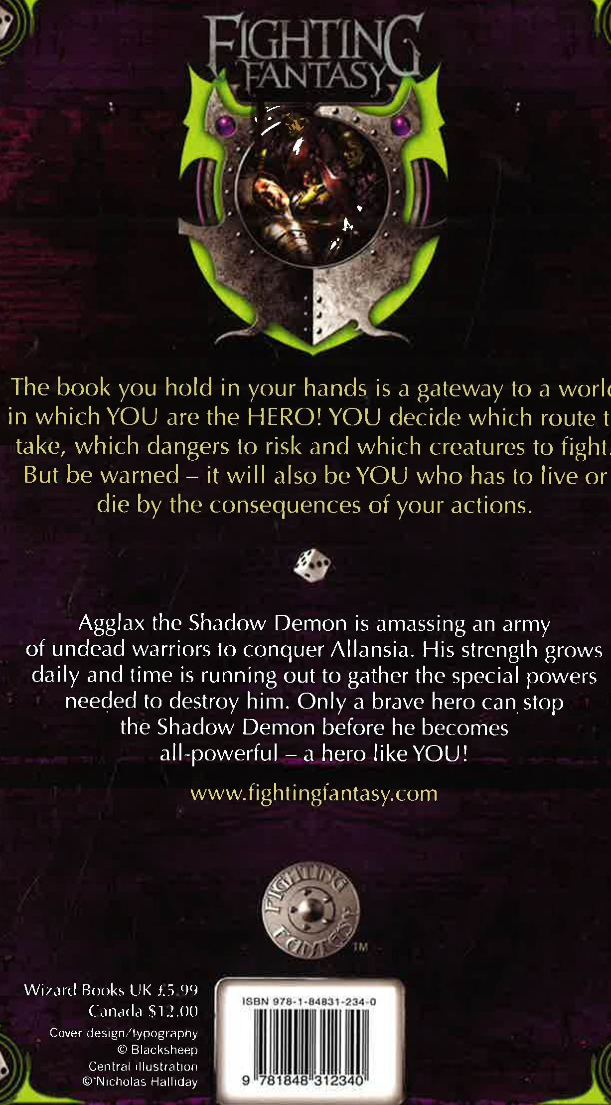 One of Fighting Fantasy's most innovative titles now in a brand-new edition. Can YOU defeat the nightmare army of the undead? Agglax the Shadow Demon is amassing an army of undead warriors to conquer Allansia. Having survived the perils of Deathtrap Dungeon you set off from Fang with over two hundred veteran soldiers to fight his army. But the Shadow Demon is not of this world and special powers are needed to destroy him. And the longer you spend searching for these powers, the stronger he will become...