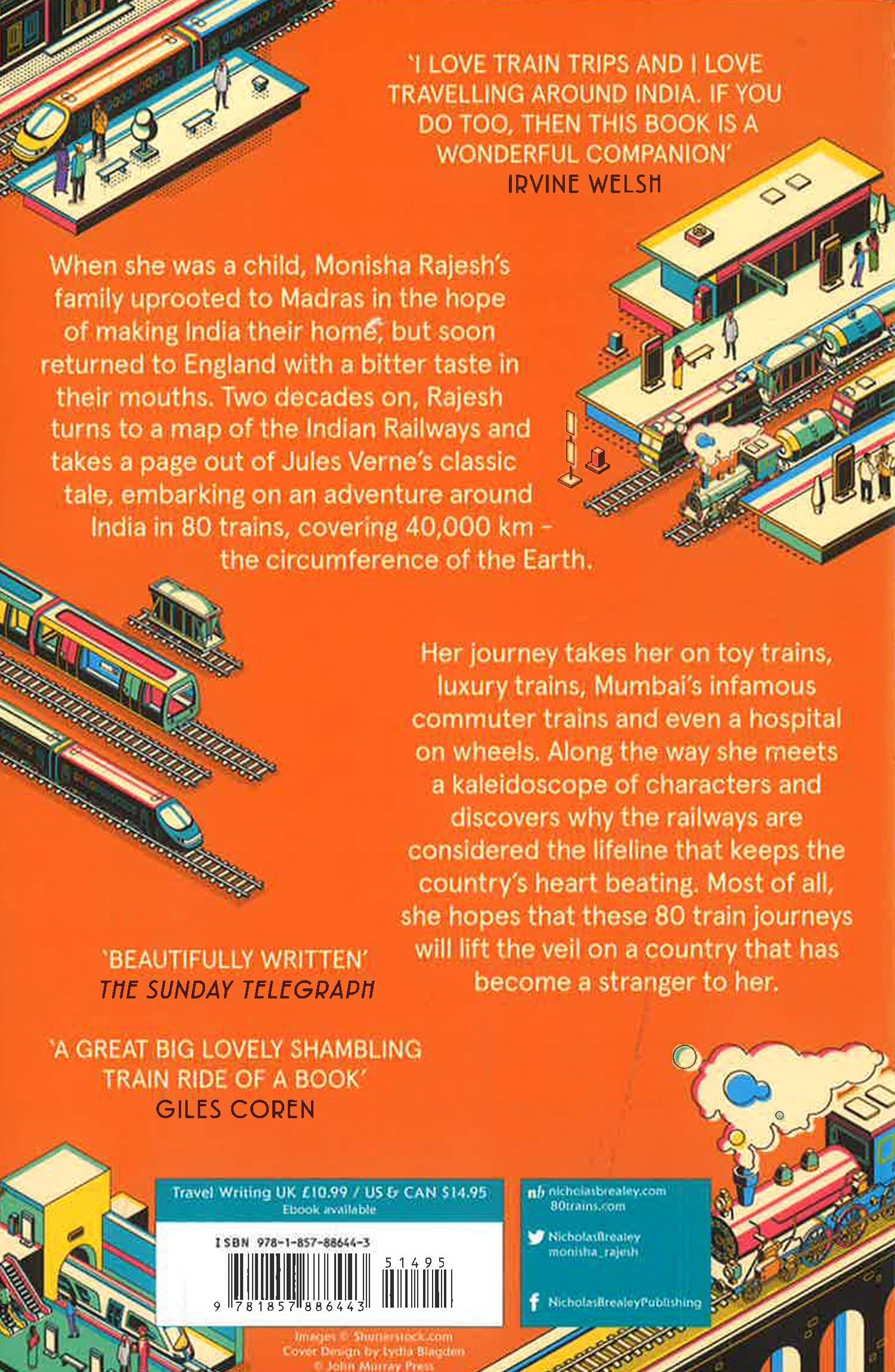 When she was a child, Monisha Rajesh's family uprooted to Madras in the hope of making India their home, but soon returned to England with a bitter taste in their mouths. Two decades on, Monisha turns to a map of the Indian Railways and takes a page out of Jules Verne's classic tale, embarking on an adventure around India in 80 trains, covering 40,000km - the circumference of the Earth.