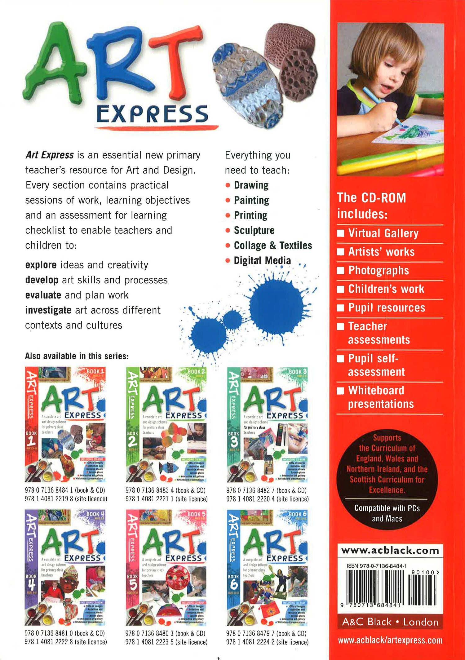 A new and complete Art and Design scheme for Primary Class Teachers. Everything you need to teach drawing, painting, printing, sculpture, digital media, collage and textiles. Every unit contains practical sessions of work, learning objectives, an AFL checklist and ideas for differentiation. Art Express enables teachers and children to: * Explore ideas and creativity * Develop art skills and processes * Evaluate and plan work * Investigate art across different cultures The CD-Rom comes with a wealth of resources, including an interactive virtual gallery, examples of famous works, stimulus photographs, pupil resources, teacher assessment sheets, whiteboard presentations and examples of other children's work.