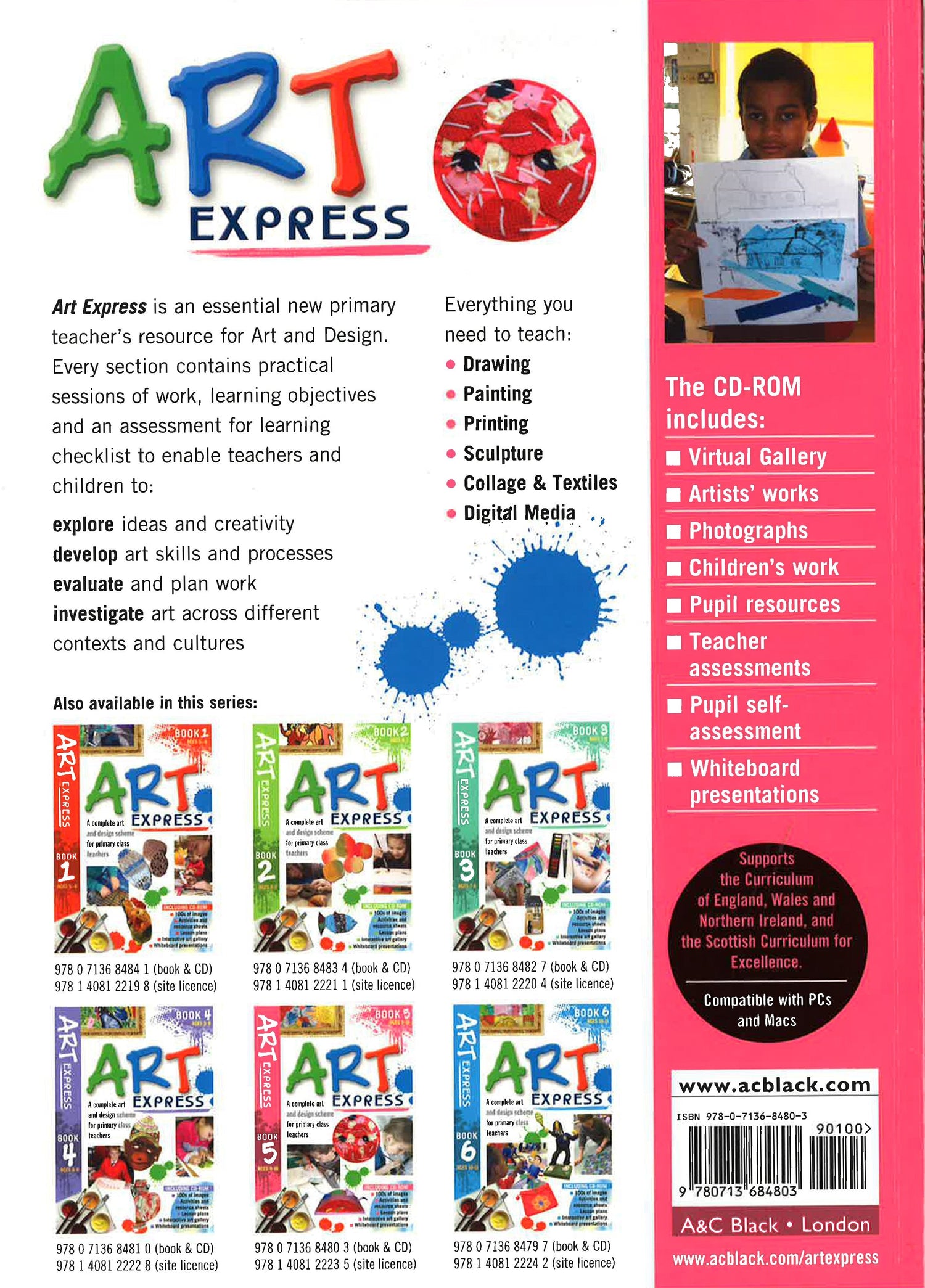 A new and complete Art and Design scheme for Primary Class Teachers. Everything you need to teach drawing, painting, printing, sculpture, digital media, collage and textiles. Every unit contains practical sessions, learning objectives, an AFL checklist and ideas for differentiation. Art Express enables teachers and children to: -Explore ideas and creativity -Develop art skills and processes -Evaluate and plan work -Investigate art across different cultures The CD comes with a wealth of resources, including an interactive virtual gallery, examples of famous works, stimulus photographs, pupil resources, teacher assessment sheets, whiteboard presentations and examples of other children's work.