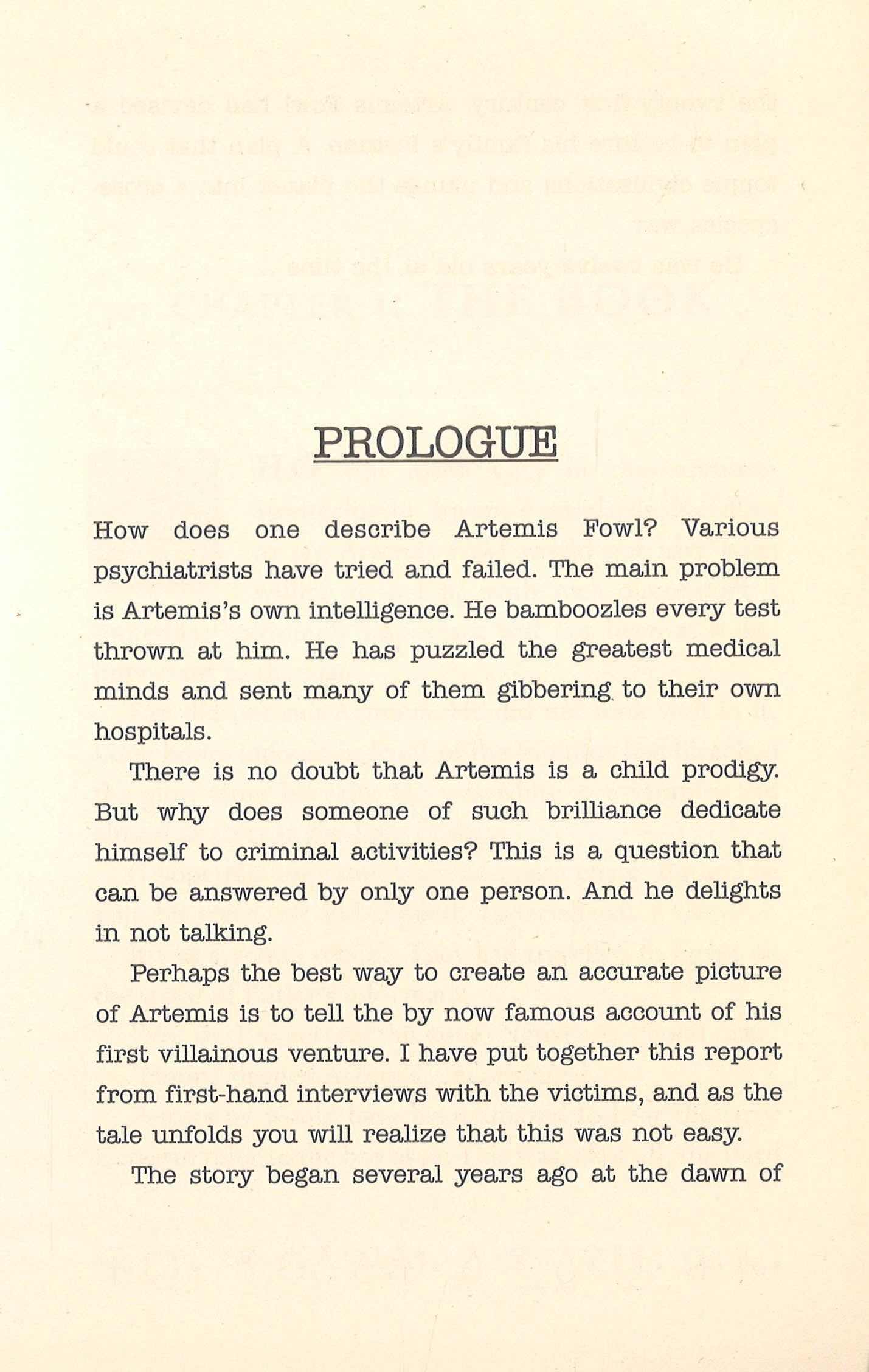 Twelve-year-old Artemis Fowl is a millionaire, a genuis, and, above all, a criminal mastermind. But even Artemis doesn't know what he's taken on when he kidnaps a fairy, Captain Holly Short of the LEPrecon Unit. These aren't the fairies of bedtime stories, they're dangerous! Full of unexpected twists and turns, Artemis Fowl is a riveting, magical adventure.