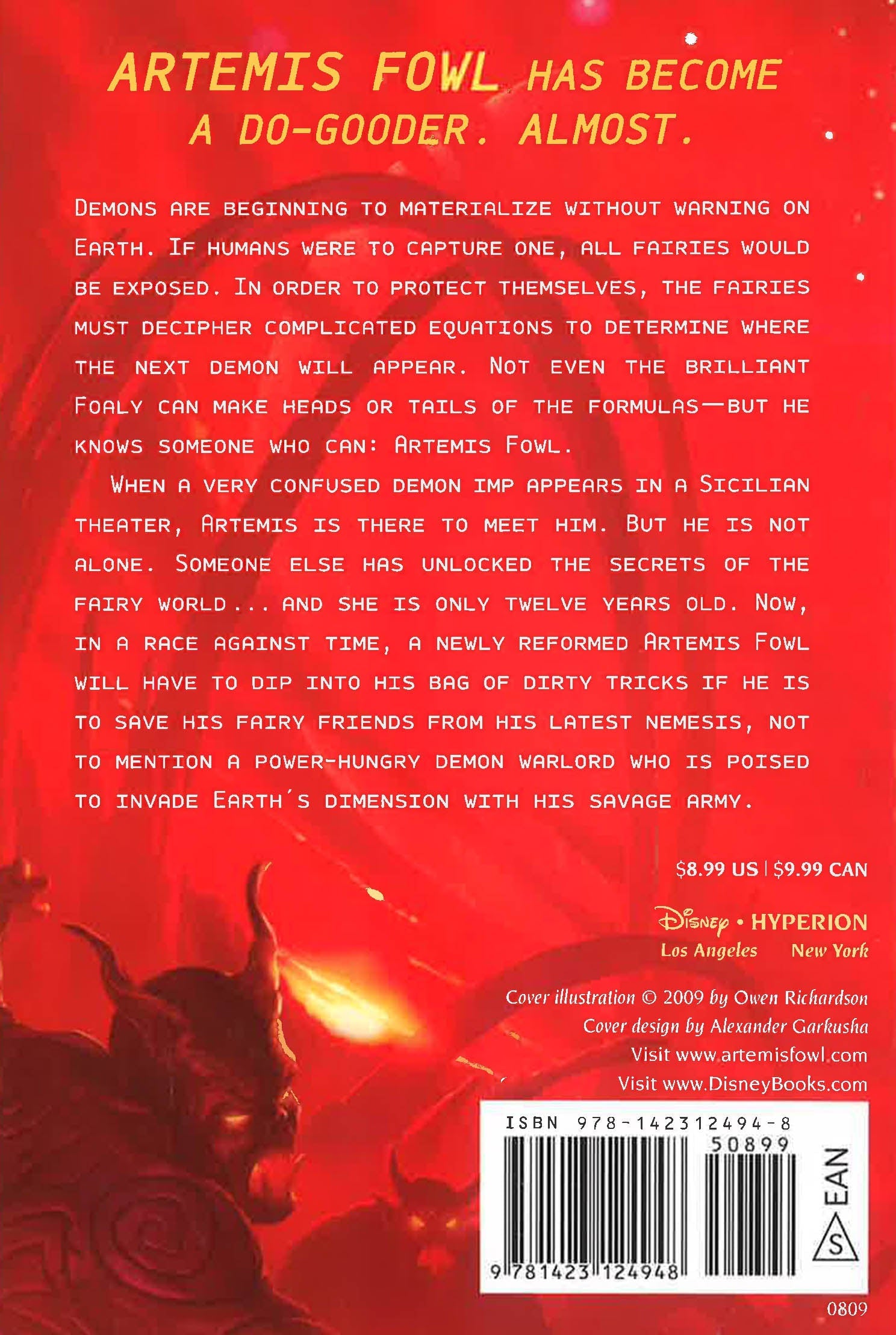Demons are beginning to materialize without warning on Earth. If humans were to capture one, all fairies would be exposed. In order to protect themselves, the fairies must decipher complicated equations to determine where the next demon will appear. Not even the brilliant Foaly can make heads or tails of the formulas ? but he knows someone who can: Artemis Fowl. When a very confused demon imp appears in a Sicilian theater, Artemis is there to meet him. But he is not alone. Someone else has unlocked the secrets of the fairy world?and she is only twelve years old. Now, in a race against time, a newly-reformed Artemis Fowl will have to dip into his bag of dirty tricks if he is to save his fairy friends from his latest nemesis, not to mention a power hungry demon warlord who is poised to invade our dimension with his savage army. *This book may have a remainder mark