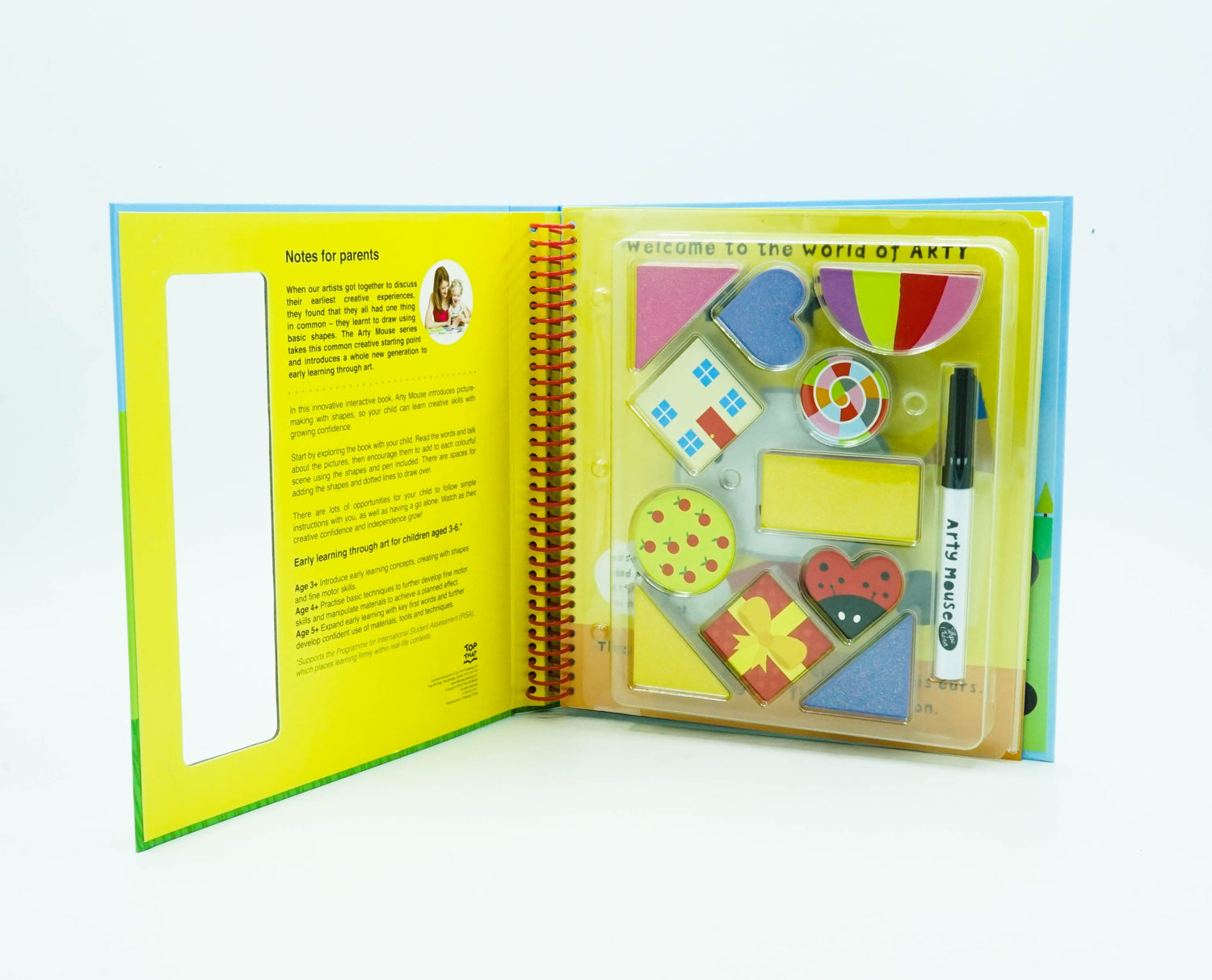 Arty Mouse Shapes is an award-winning, early learning activity kit from Top That Publishing for boys and girls aged 3+.This high-quality, craft kit features robust wipe-clean pages printed on card, as well as dozens of colourful card shapes and a pen housed in a reusable vac form, so children can get to grips with picture making using shapes. Notes for Parents help to guide early learning through art, with different educational outcomes for children aged 3-6. Arty Mouse Activity Kits won the Best Preschool Publishing Range category at the Progressive Preschool Awards 2015. All Arty Mouse early learning activity books help to develop hand-eye coordination and expand children's knowledge of key first concepts and their understanding of the wider world through art-based activities.Arty Mouse visual learning titles support UK National Curriculum, USA Common Core State Standards Initiative and Australian ACARA learning objectives. Written and illustrated by BookTrust Early Years award-winner Mandy Stanley.