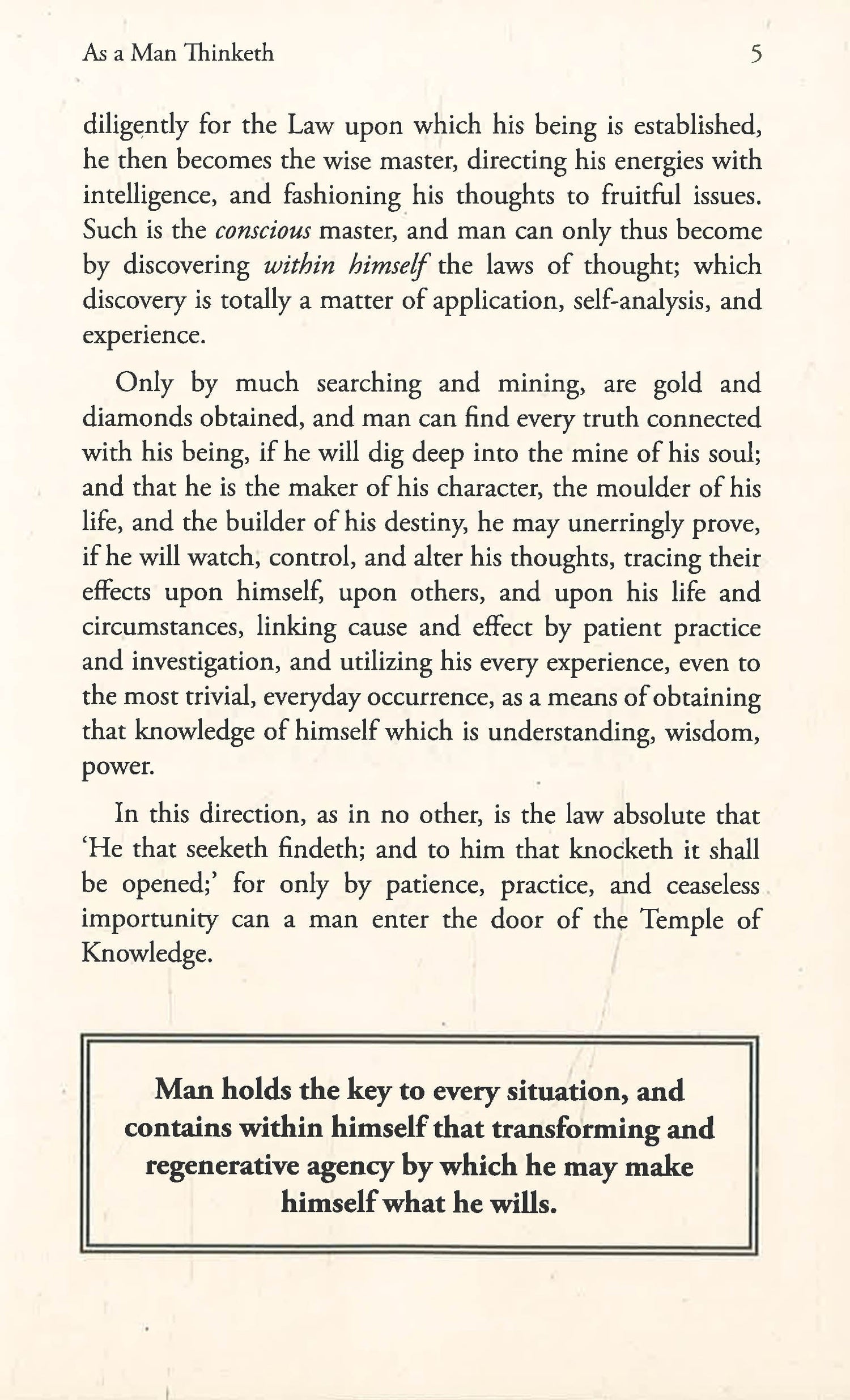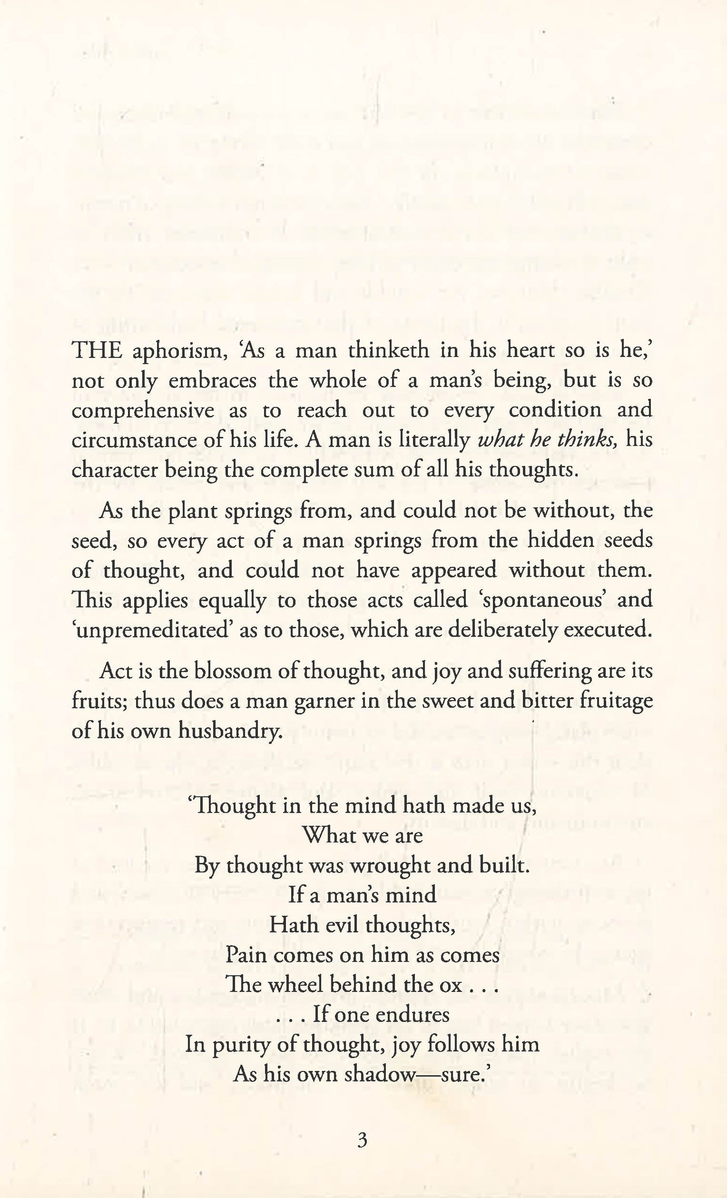 Millions of readers have experienced the power of James Allen's As a Man Thinketh. The book's simple, forthright ideas have touched hearts and even changed lives for more than a century -- and today they continue to point the way toward a fuller, richer, more compassionate existence.