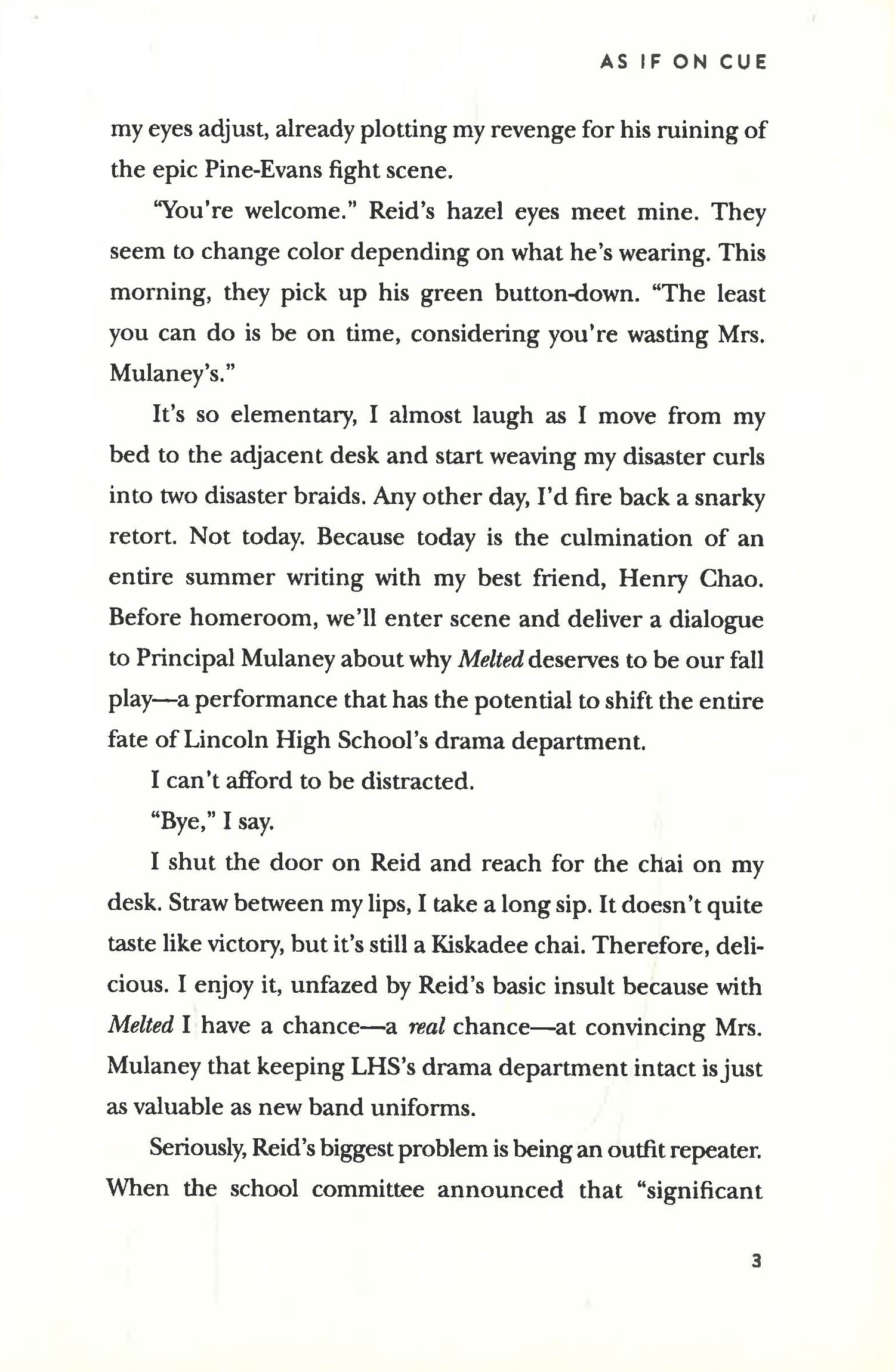 Lifelong rivals Natalie and Reid have never been on the same team. So when their school’s art budget faces cutbacks, of course Natalie finds herself up against her nemesis once more. She’s fighting to direct the school’s first ever student-written play, but for her small production to get funding, the school’s award-winning band will have to lose it. Reid’s band. And he’s got no intention of letting the show go on.
