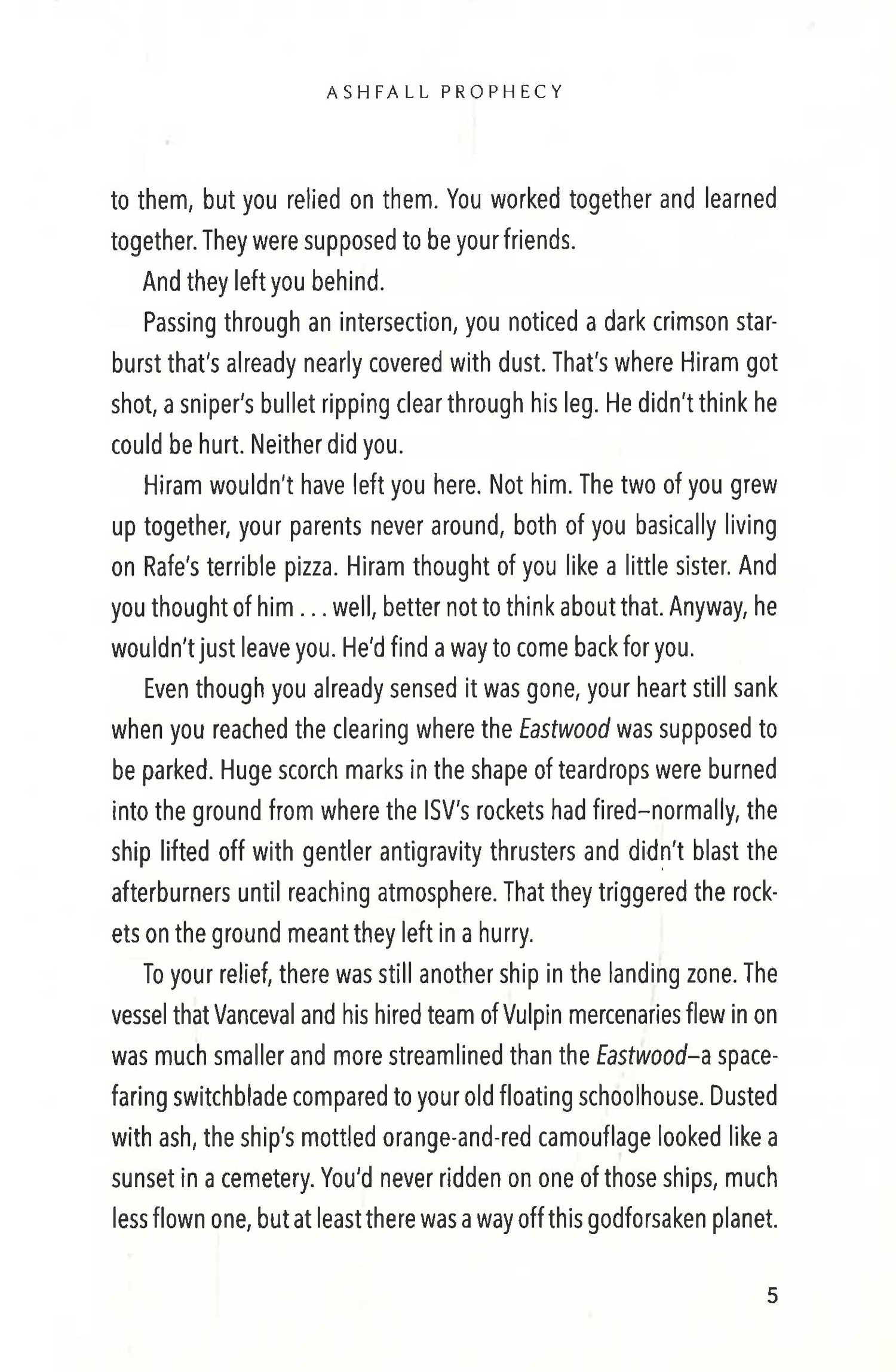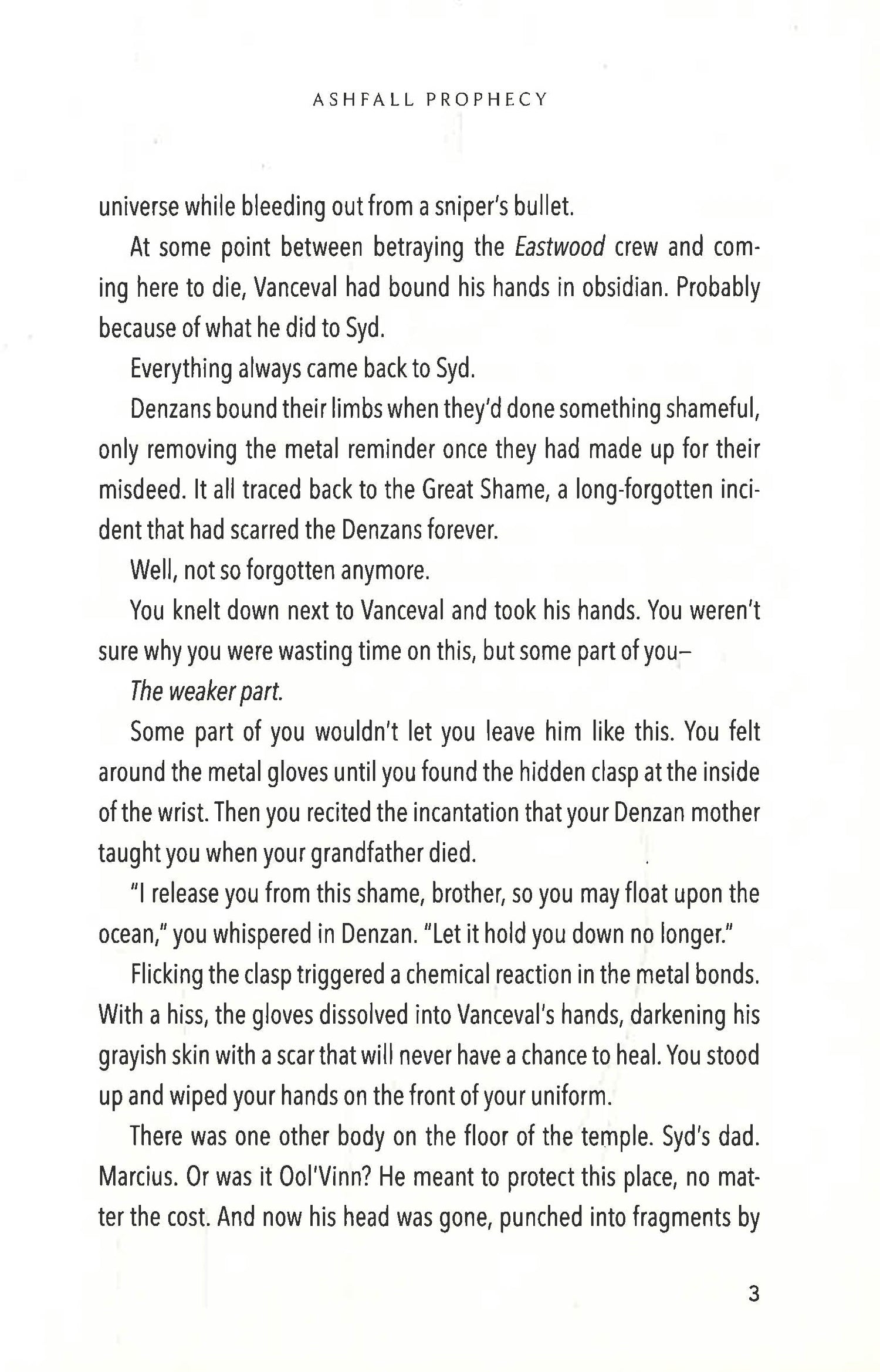 Syd Chambers grew up on Earth with his human mother and barely remembers his alien father from Denza, who left on a mission when Syd was very young. After leaving Earth, Syd learned the truth of his father’s disappearance on the planet Ashfall—his father had died protecting a devastating secret about the history between humans and Denzans.