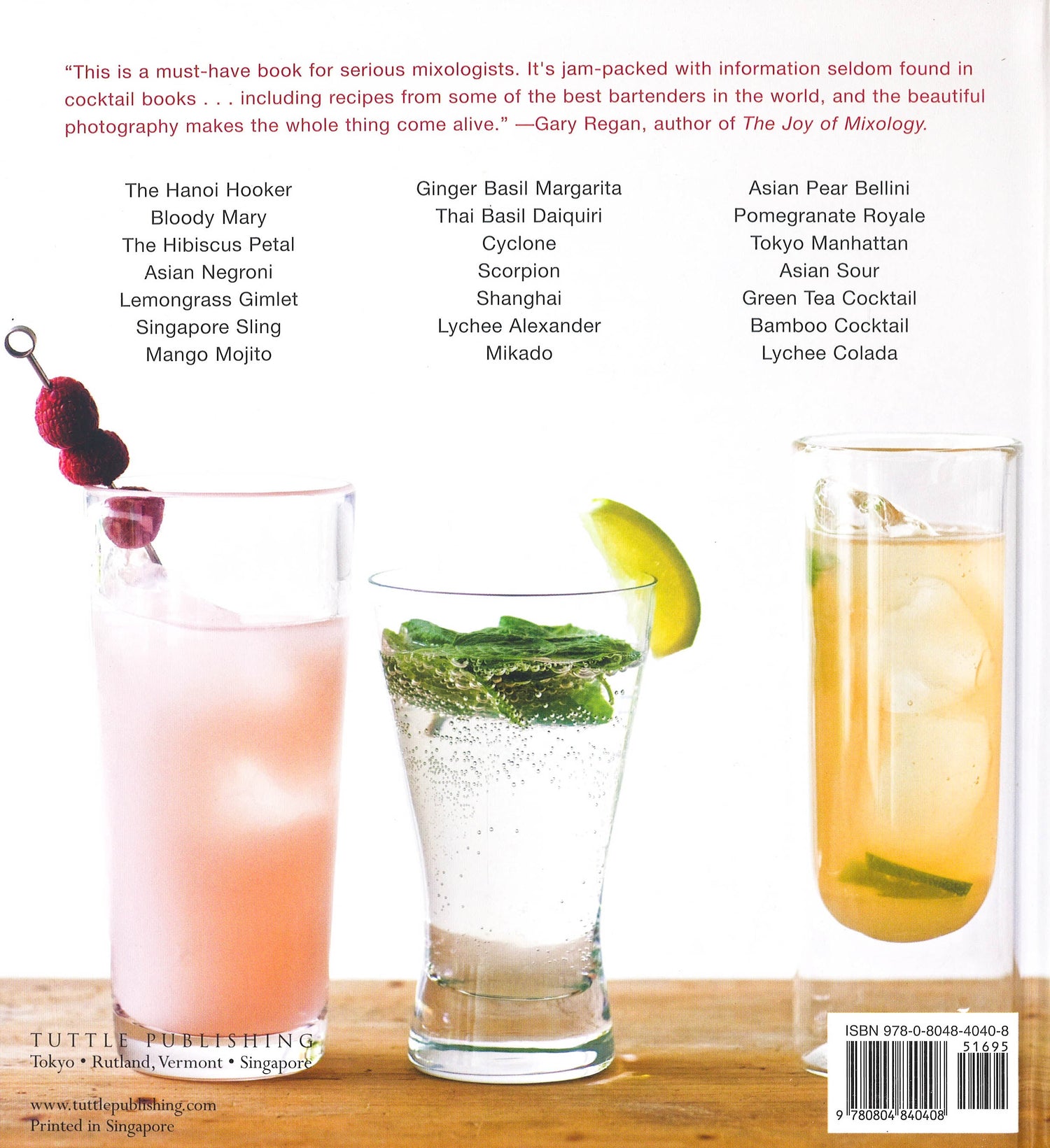 Tired of the same old cocktails? Looking for something new to spice up your evening? Introduce yourself to the wild and wonderful world of Asian-inspired drinks with "Asian Cocktails" - you'll be glad you did! Try a Sake Mojito on for size, or the mouthwatering Hanoi Hooker, the aptly named Coriander Collins or, for the perfect after-dinner treat, the Lychee Alexander. "Asian Cocktails" is an exciting collection of 90 cocktails, including 10 non-alcoholic drinks and a handful of tempting bar snack recipes such as Tamari Almonds and Curry Popcorn. With flavours ranging from bold to subtle, "Asian Cocktails" reflects the taste and style of 15 mixologists - from 5 countries - who contributed recipes to this special book. A perfectly balanced mix of old favourites and new temptations, this book is sure to make your next cocktail party a hit.