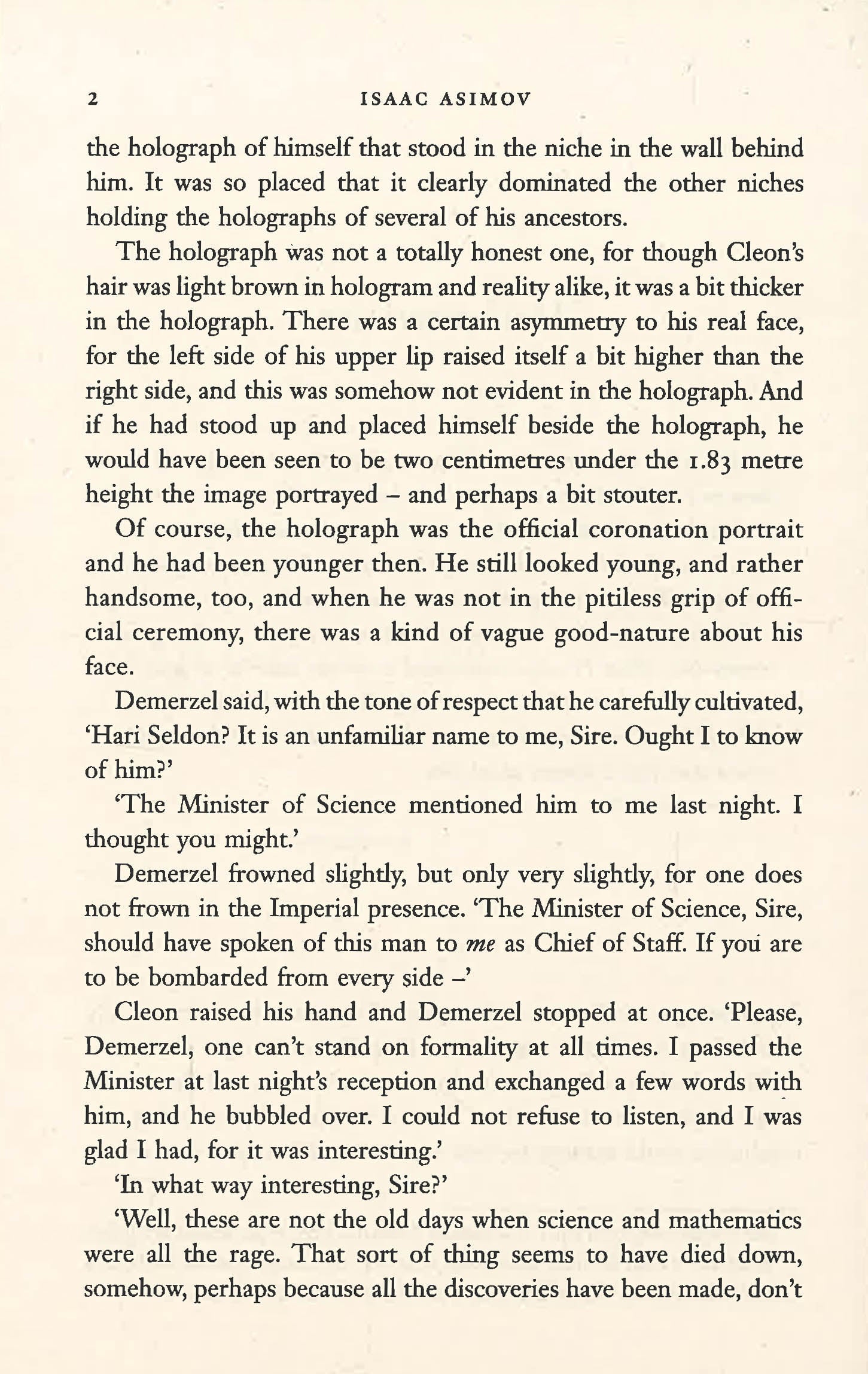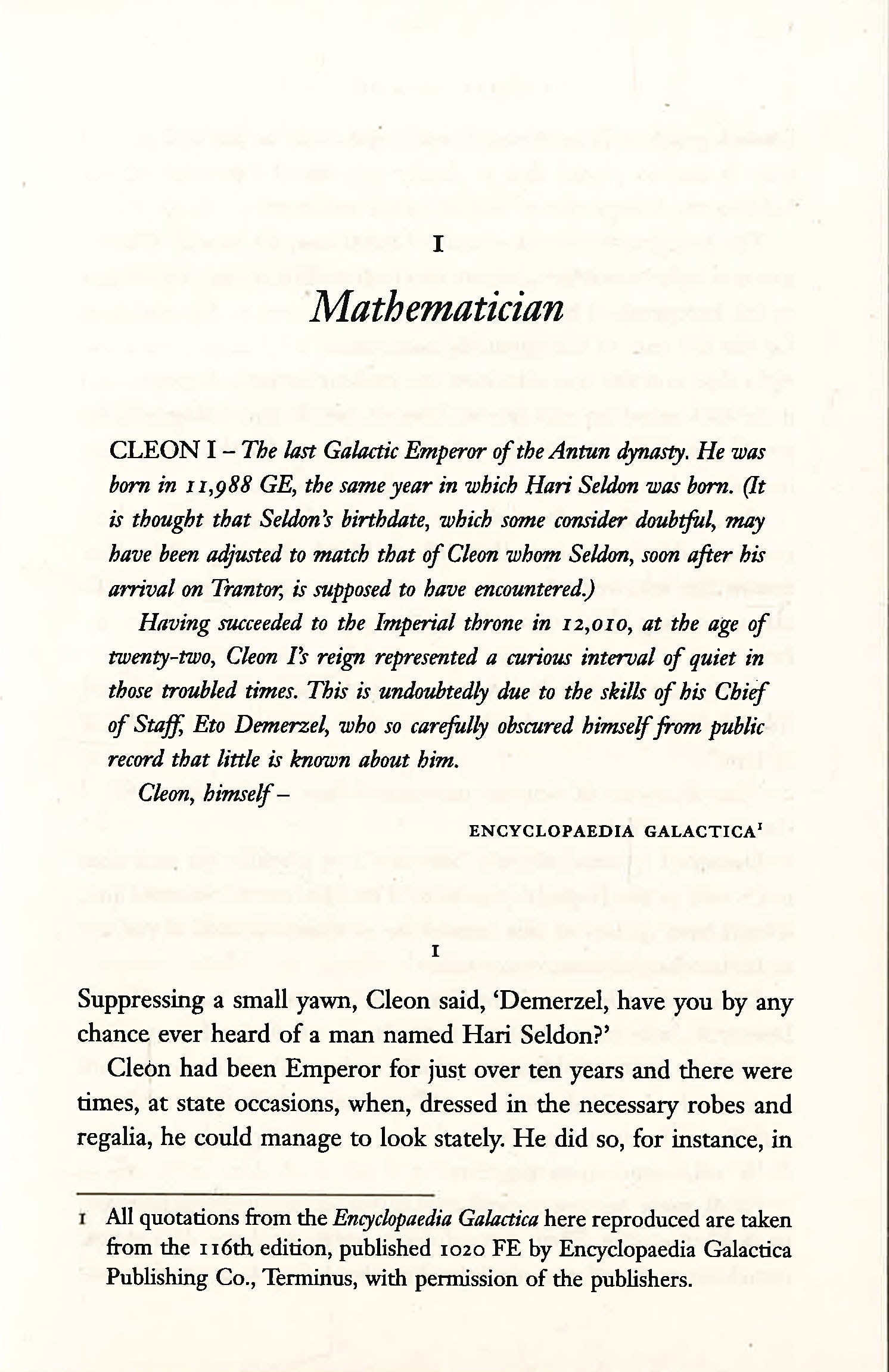 However, Hari refuses to deploy his theory for political gain, setting off instead with reporter Chetter Hummin in quest of a place to safely apply his theory: Earth, the original home of humanity.