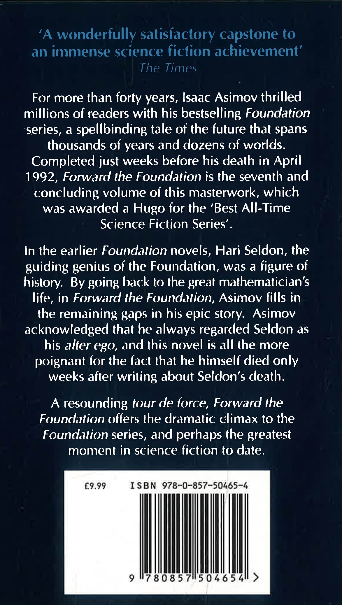 Among those seeking to turn psychohistory into the greatest weapon known to man are a populist political demagogue, the weak-willed Emperor Cleon I, and a ruthless militaristic general. In his last act of service to humankind, Hari Seldon must somehow save his life’s work from their grasp as he searches for its true heirs—a search that begins with his own granddaughter and the dream of a new Foundation.