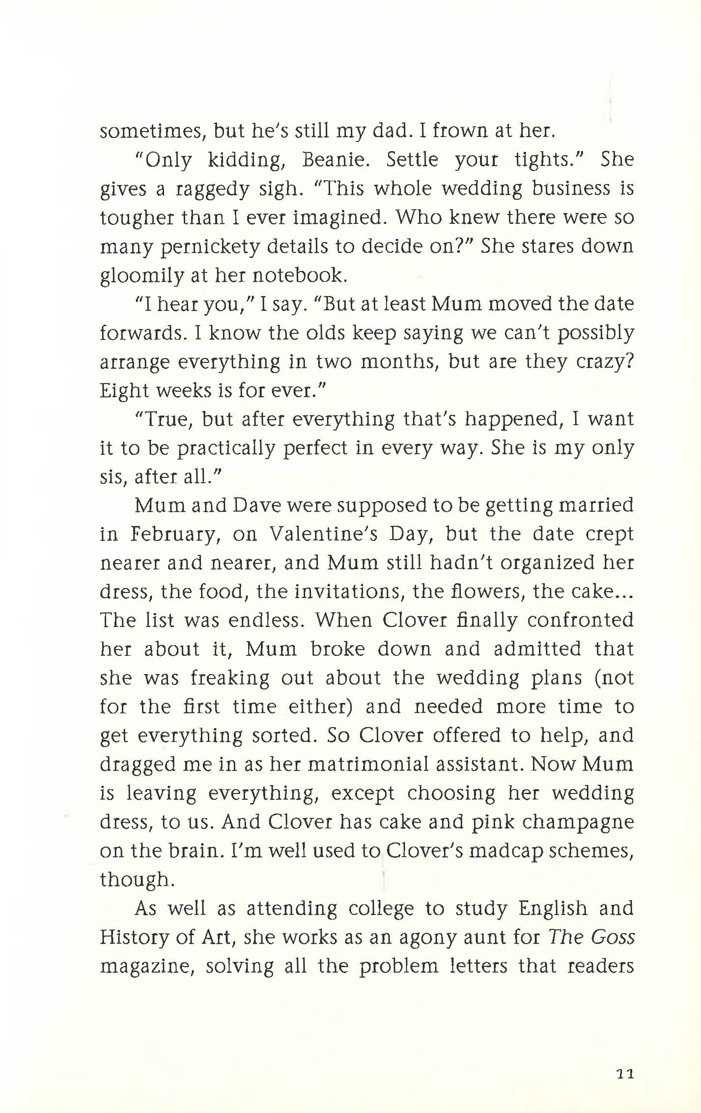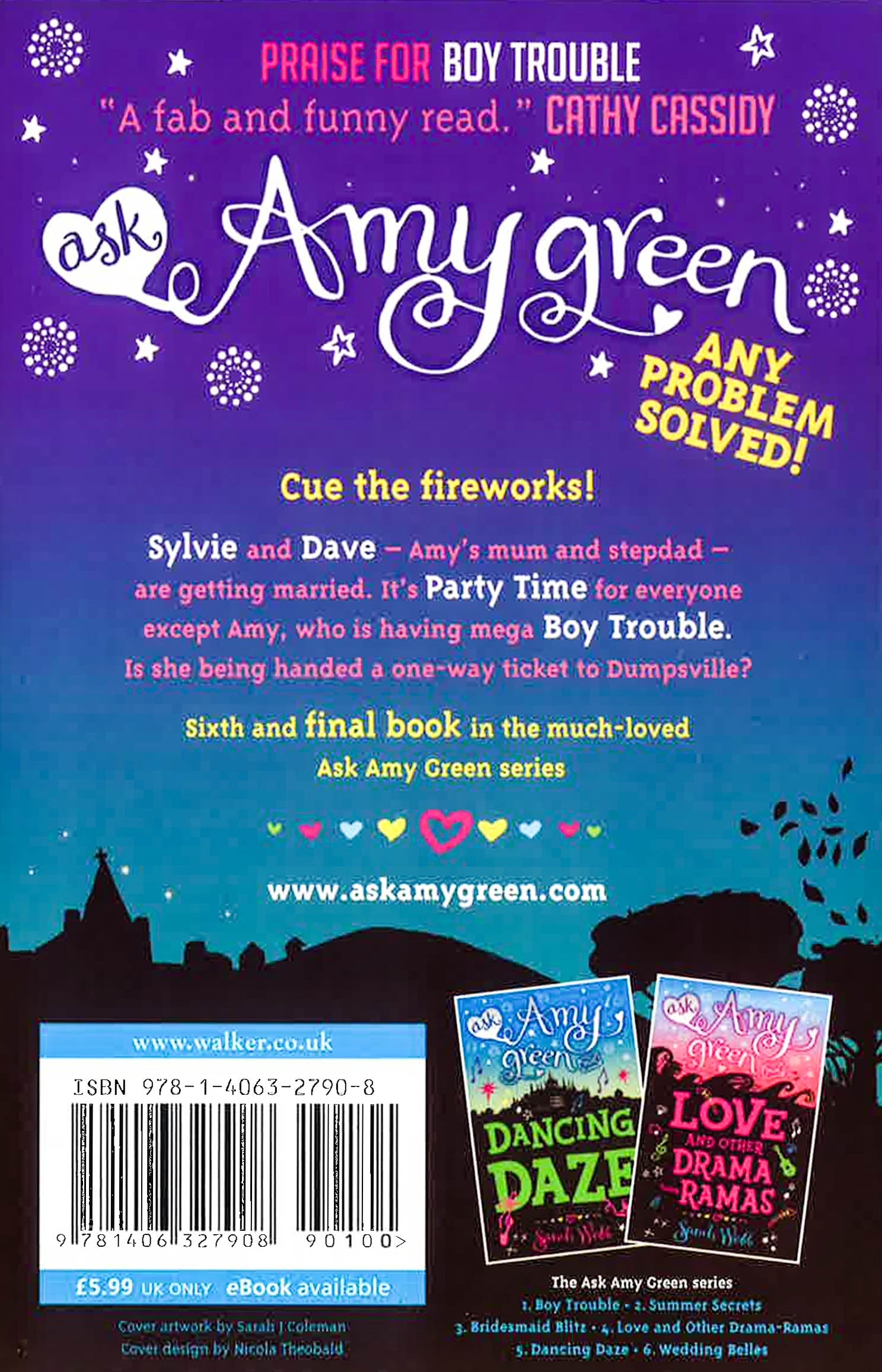 From boy troubles to wardrobe dilemmas, first dates to embarrassing parentals - agony-aunts extraordinaire Amy and Clover are back in their sixth novel, solving problems for pre-teens everywhere! Wedding fever! Amy's mum is preparing to tie the knot with Dave - but while everyone's been caught up in confetti and cake, the groom has gone AWOL. Meanwhile, Amy's boyfriend, Seth, isn't speaking to her, her best friend, Mills, is having yet more boy trouble and Aunt Clover has a huge secret... Can Amy's life get any more complicated?