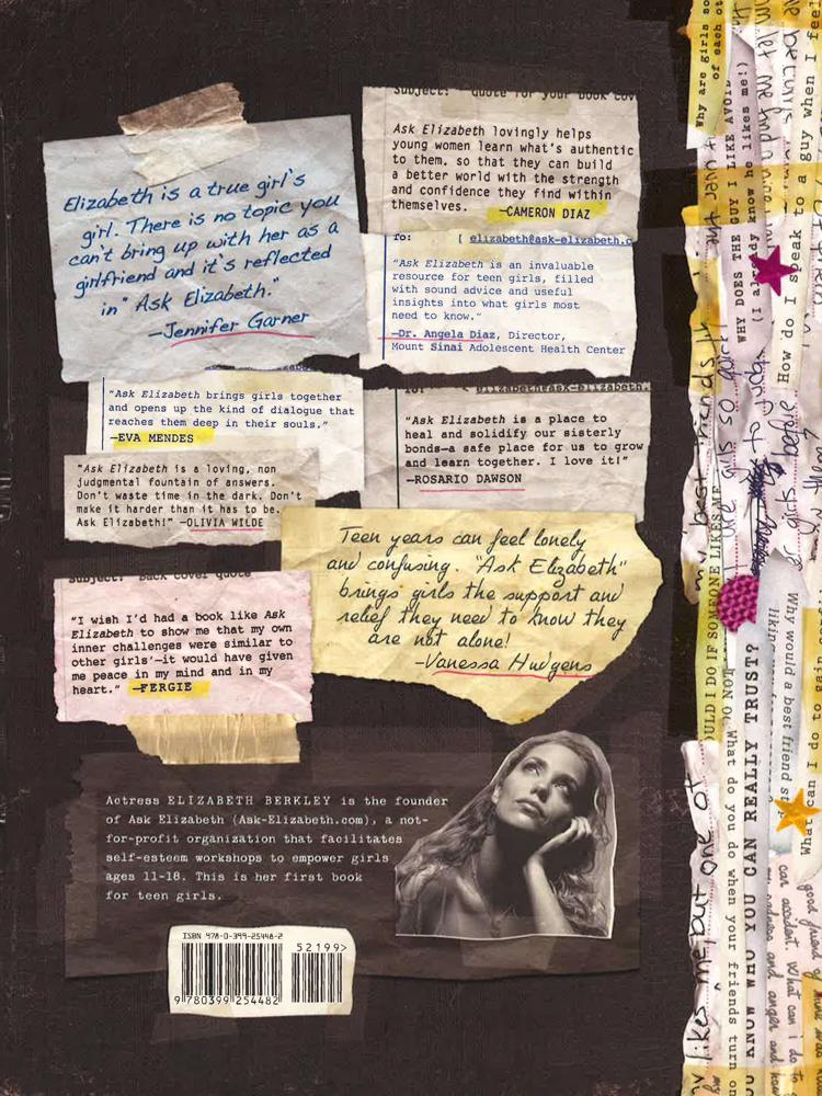 "Ask Elizabeth" is the complete guide to teen life; the last and only self-help book they'll ever need. Drawn from the many workshops Elizabeth Berkley has conducted with teen girls across the country, "Ask Elizabeth" brings these revealing and intimate conversations to life on the page.